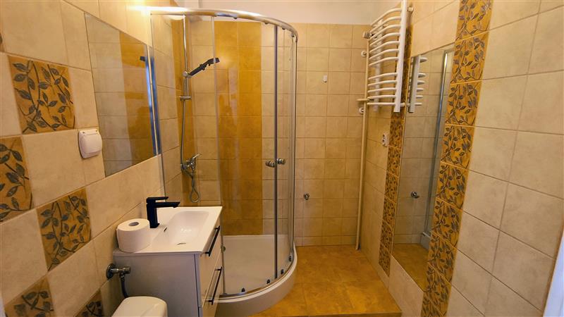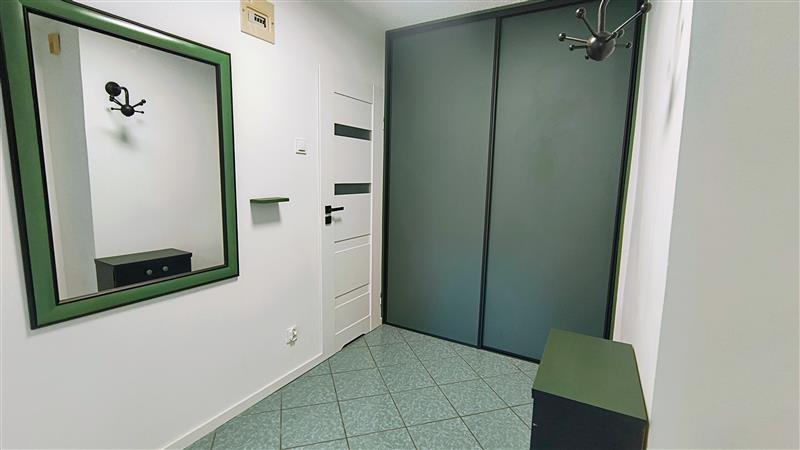 W pokoju z aneksem kuchennym na podłodze terakota, ściany gładź malowana, w części kuchennej zabudowa mebli. W sypialni na podłodze nowa wykładzina dywanowa, ściany gładź malowana. Okna PCV wystawa południowo-zachodnia. Nowa, ładna stolarka drzwiowa wewnętrzna w kolorze białym. W łazience 3,5m2 glazura i terakota w ciepłych kolorach, kabina prysznicowa. Ciepła woda z sieci miejskiej. Do lokalu przynależy piwnica.