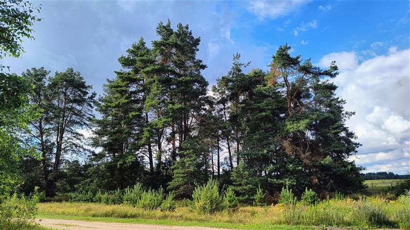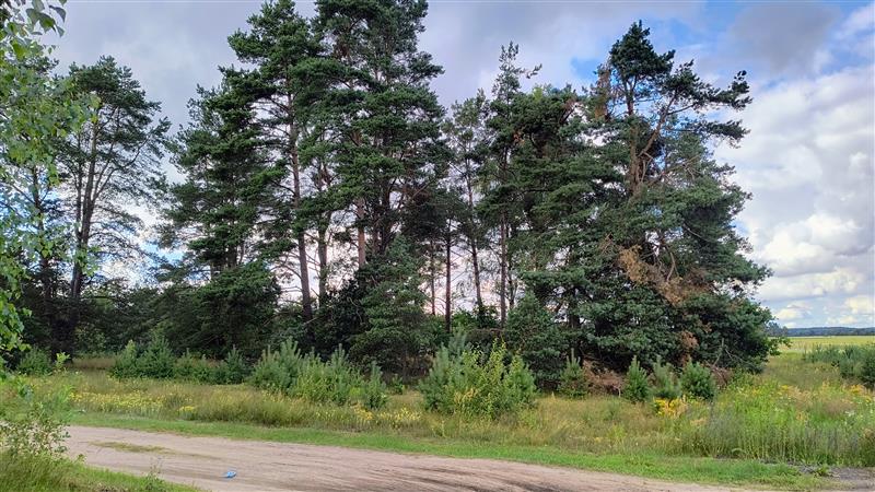 Obecnie porośnięty jest kilkoma pięknymi, dużymi drzewami pośród których można idealnie wkomponować dom.