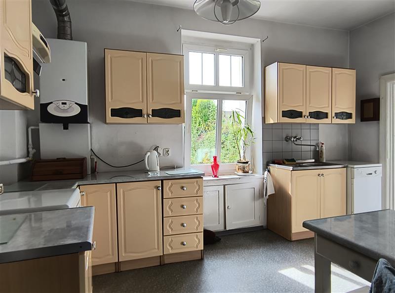 Dom ogrzewany jest gazem - piec gazowy dwufunkcyjny, umieszczony jest w części kuchennej budynku od strony ogrodu, na parterze.
