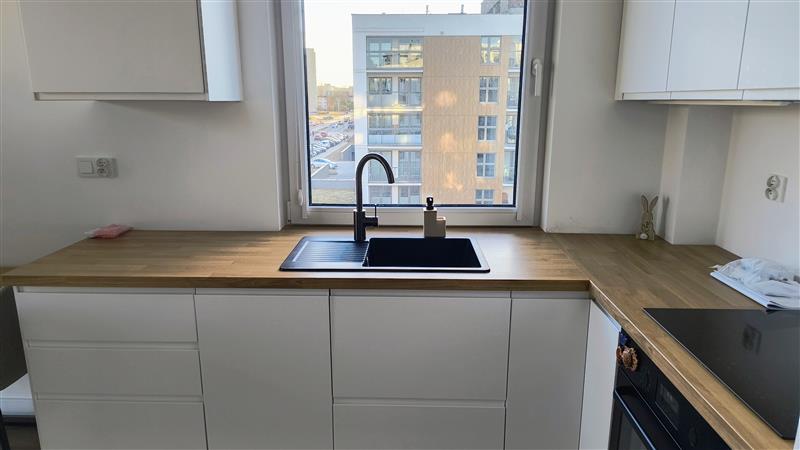 Kuchnia w pełni umeblowana i wyposażona - zmywarka, piekarnik, płyta indukcyjna, lodówka, pochłaniacz.