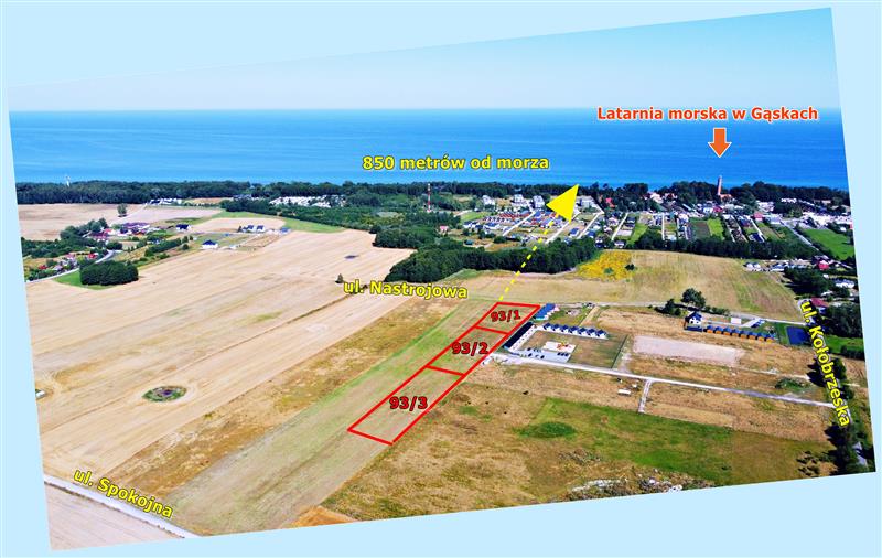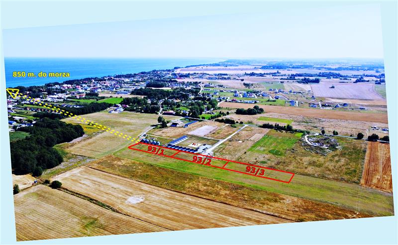 Odległość od morza w linii prostej od działki położonej najbliżej strony północnej: około 820 m.