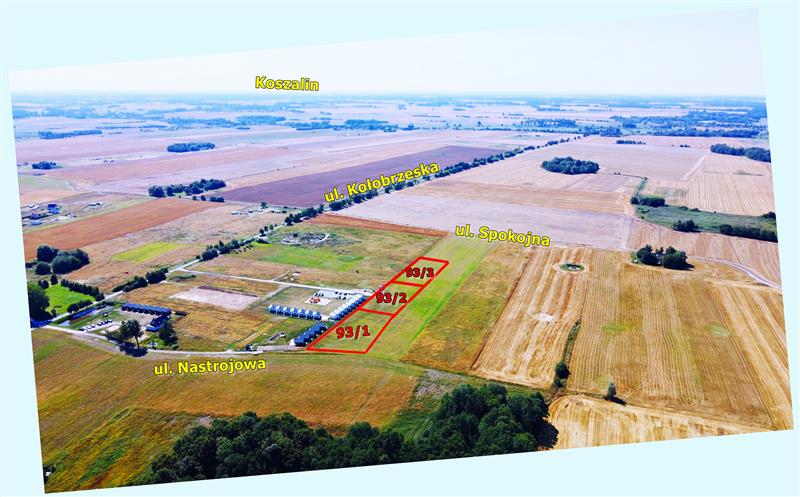 Jadąc od strony centrum Gąsek w kierunku Śmiechowa ulica Kołobrzeską za niebieskim przystankiem skręcamy w prawo. Od północy działka nr 93/1 graniczy z ulicą Nastrojową.