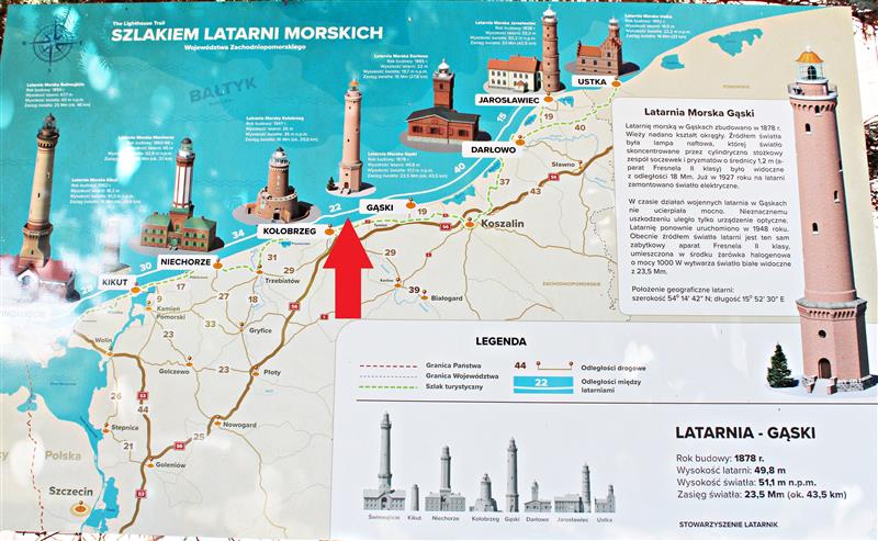 Odległość od morza drogą samochodową do zejścia na plaże w sąsiedztwie latarni to około 1,4 km