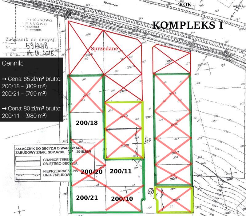 Cena kompleksu (nr 1, 2 i 3): 25 zł netto/m2 z warunkiem zakupu wszystkich działek.