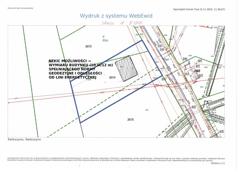 **DZIAŁKA BUDOWLANA** o numerze 367/4, położona w miejscowości #Świeszyno.