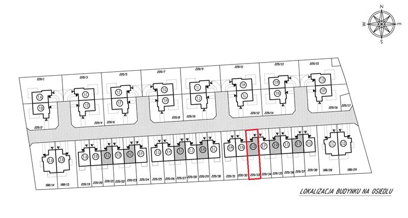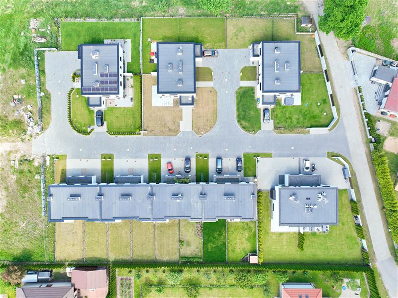 Całe osiedle obejmować będzie docelowo 40 budynków, dojazd do osiedla drogą asfaltową na osiedlu droga wewnętrzna wyłożona polbrukiem.