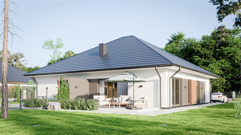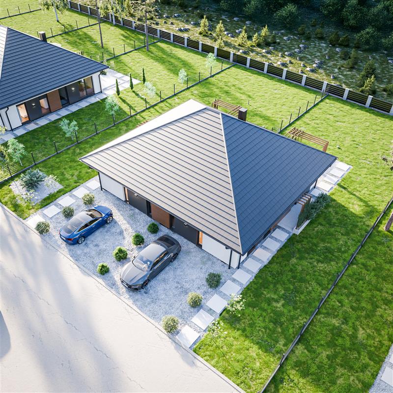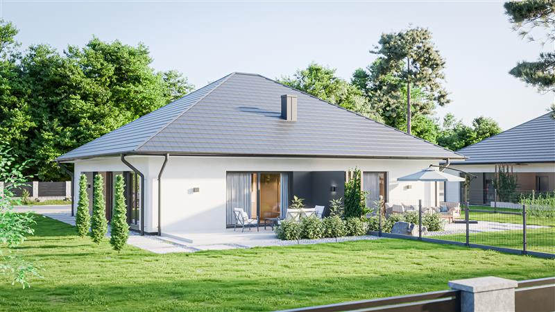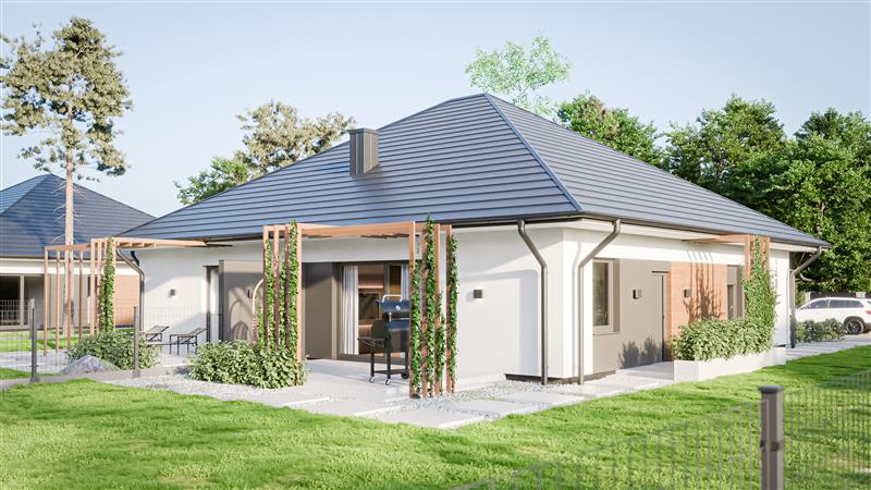 Budynek parterowy z poddaszem nieużytkowym, zrealizowany będzie w technologii prefabrykowanej. Funkcjonalna i nowoczesna zabudowa to komfort użytkowania na lata.