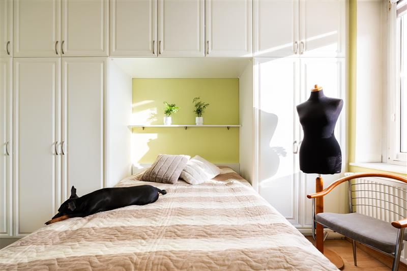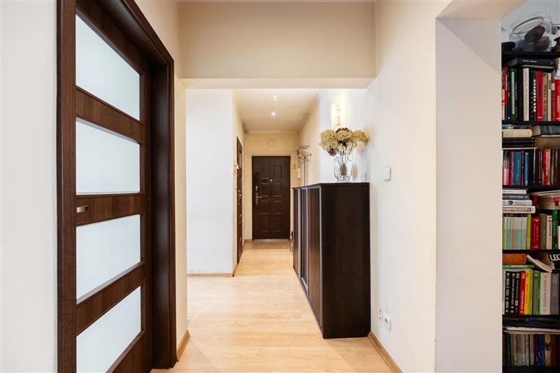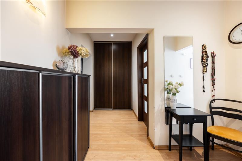 - szeroki funkcjonalny korytarz z szafą w zabudowie stałej