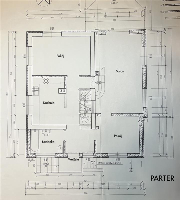Powierzchnia całkowita domu: 185 m2 (w tym piwnica: 41 m2, parter: 86 m2, piętro: 58 m2, nieużytkowy strych)