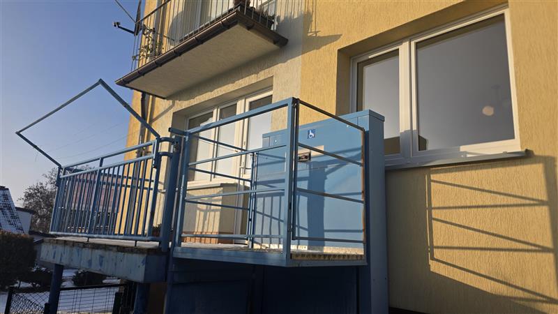 Nieruchomość została wyposażona w specjalistyczną windę zewnętrzną dla osób z niepełnosprawnością