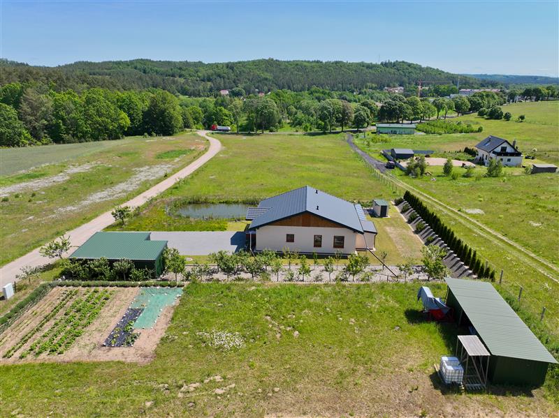 Nieruchomość położona w cichym, spokojnym miejscu z pięknym widokiem na okoliczny las – idealna dla osób ceniących prywatność, naturę oraz bliskość terenów rekreacyjnych.