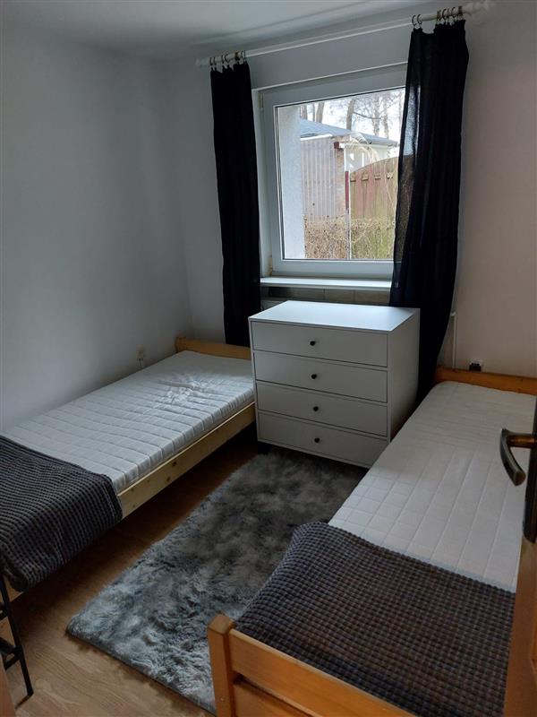 Mieszkanie składa się z salonu z aneksem kuchennym, dwóch pokoi ( w każdym z nich dwa pojedyncze łóżka), łazienki oraz wiatrołapu. W kuchni płyta elektryczna, mikrofalówka, zlew dwukomorowy, lodówka podblatowa.