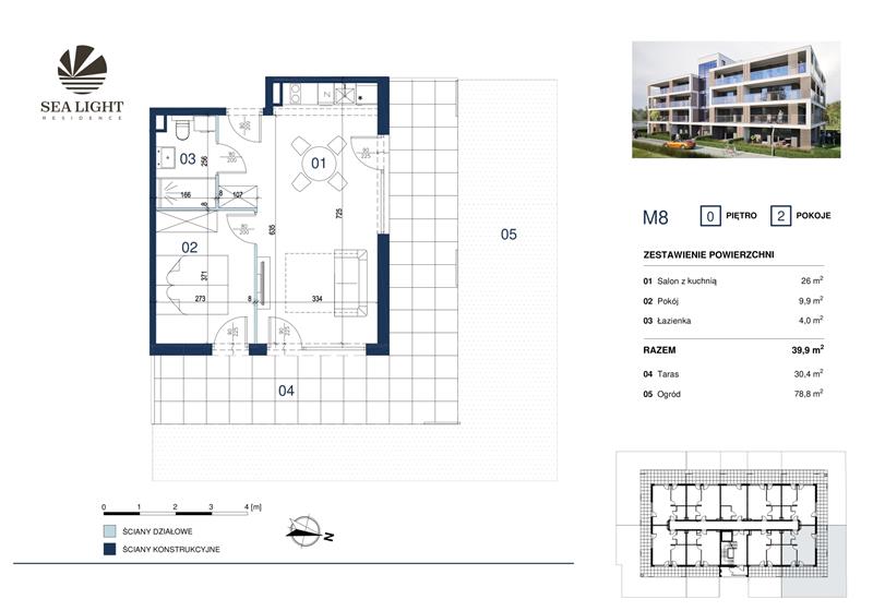 Prezentujemy dwupokojowy apartament o powierzchni 39,90 mkw z tarasem i ogródkiem położony na parterze.