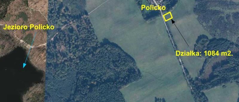 Działka przeznaczona pod budownictwo jednorodzinne o pow. 1084 m2 położona w spokojnej i urokliwej miejscowości, Policko.  Nieruchomość posadowiona w odległosci kilkuset metrów od lasu i ok. 800 metrów od jeziora kąpielowego Policko na lekkim wzniesieniu. Kształt działki to prostokąt. Na działkę wydane są Warunki Zabudowy.