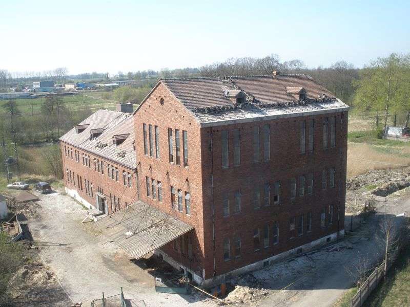Magazynowy, trzykondygnacyjny budynek z pierwotnym przeznaczeniem na spichlerz zbożowy. Bardzo stabilna konstrukcja żelbetonowa (szkielet, stropy i fundamenty) z wypełnieniami z cegły ceramicznej. Ściany o grubości 42 cm. Dach z dźwigarami żelbetonowymi pokryte dachówką ceramiczną. Remont dachu wykonano w 2009 roku. Przełożono dachówkę na całości, uzupełniono braki dachówek, zamontowano nowe orynnowanie oraz instalację odgromową.