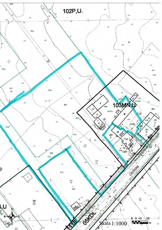 Wraz z działką o powierzchni 13 979 m2, sprzedawana jest działka o powierzchni 3013 m2, która na dzień dzisiejszy wykorzystywana jest jako droga dojazdowa do sąsiednich działek.