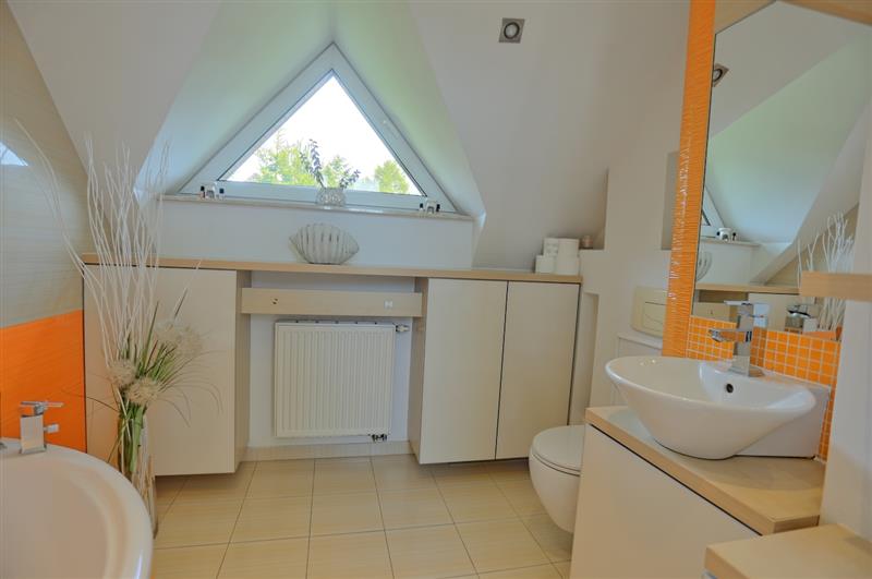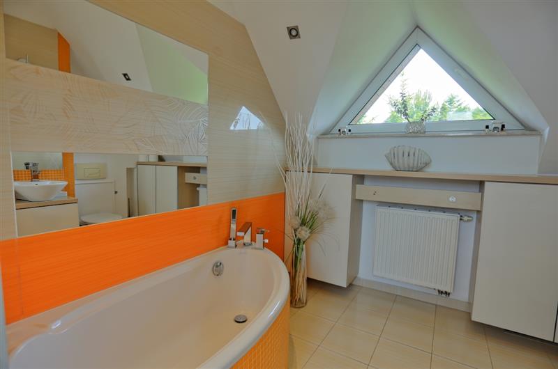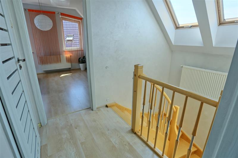 Piętro: dwie duże sypialnie (15,7 m2 i 20 m2) oraz komfortowa łazienka z WC.