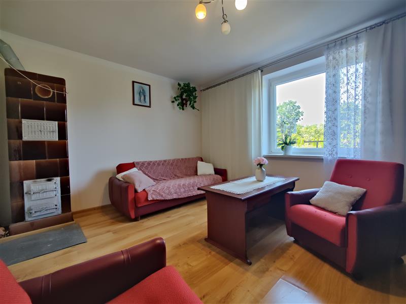 Ogrzewanie mieszkania z dwóch źródeł: pokoje ogrzewane piecem kaflowym. Kuchnia i łazienka oraz woda użytkowa ogrzewane z kuchni z wężownicą.