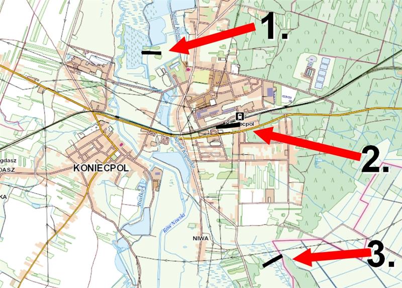Kompleks działek położony w miejscowości Koniecpol sprzedawane jako całość w którego składa wchodzą na mapce zbiorczej zaznaczone numerami: