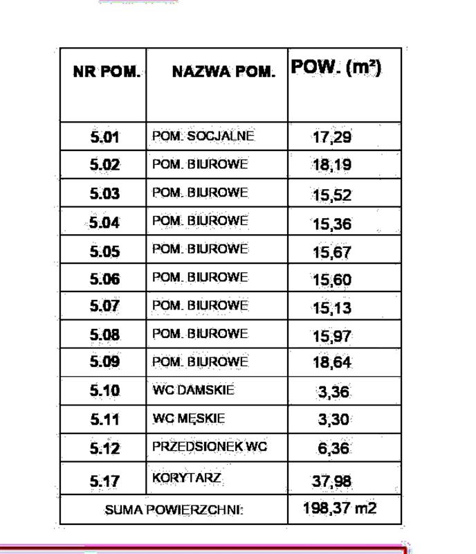Powierzchnia lokalu wynosi 198,43 m2 i obecnie obejmuje: