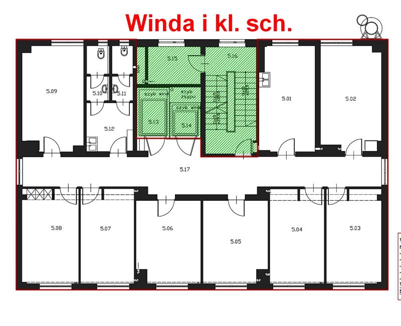 - Pomieszczenie sanitarne – dwie toalety wraz z przedsionkiem.