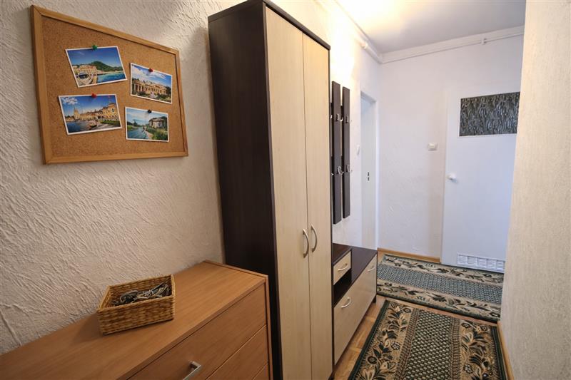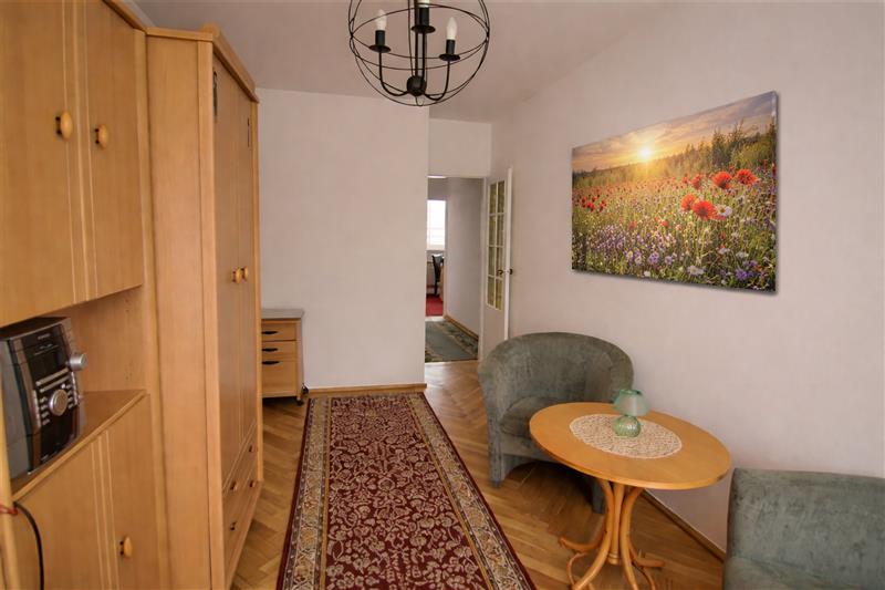 W przedpokoju znajduje się wieszak na kurtki wraz z szafkami na przechowywanie.