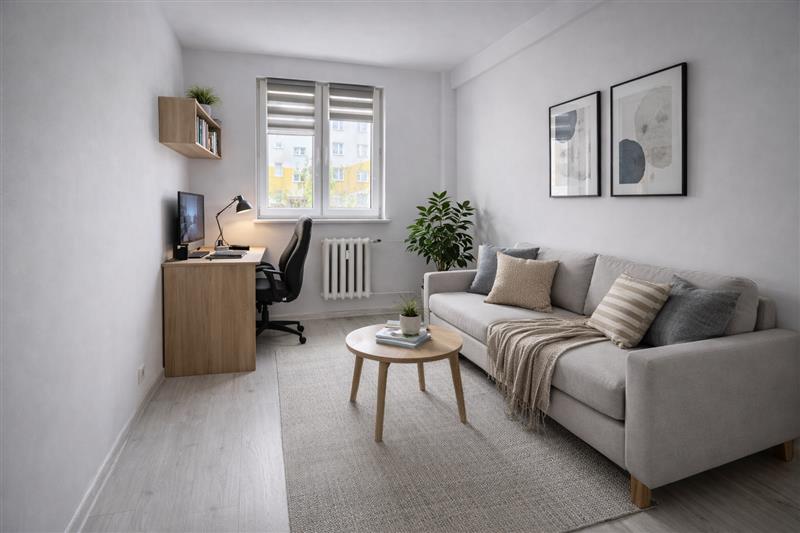 Mieszkanie jest sprzedawane bez wyposażenia, na zdjęciach przedstawiono jedynie przykładową aranżację pomieszczeń.