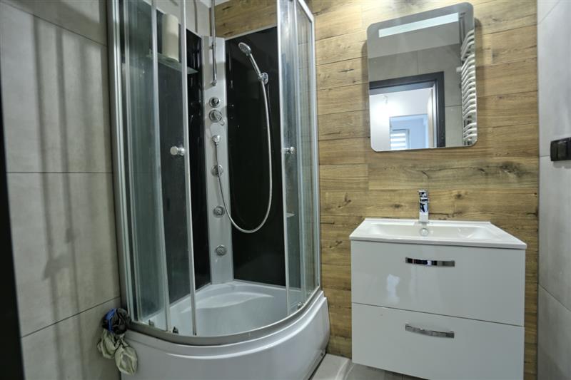 - łazienki z kabiną prysznicową i umywalką z lustrem,