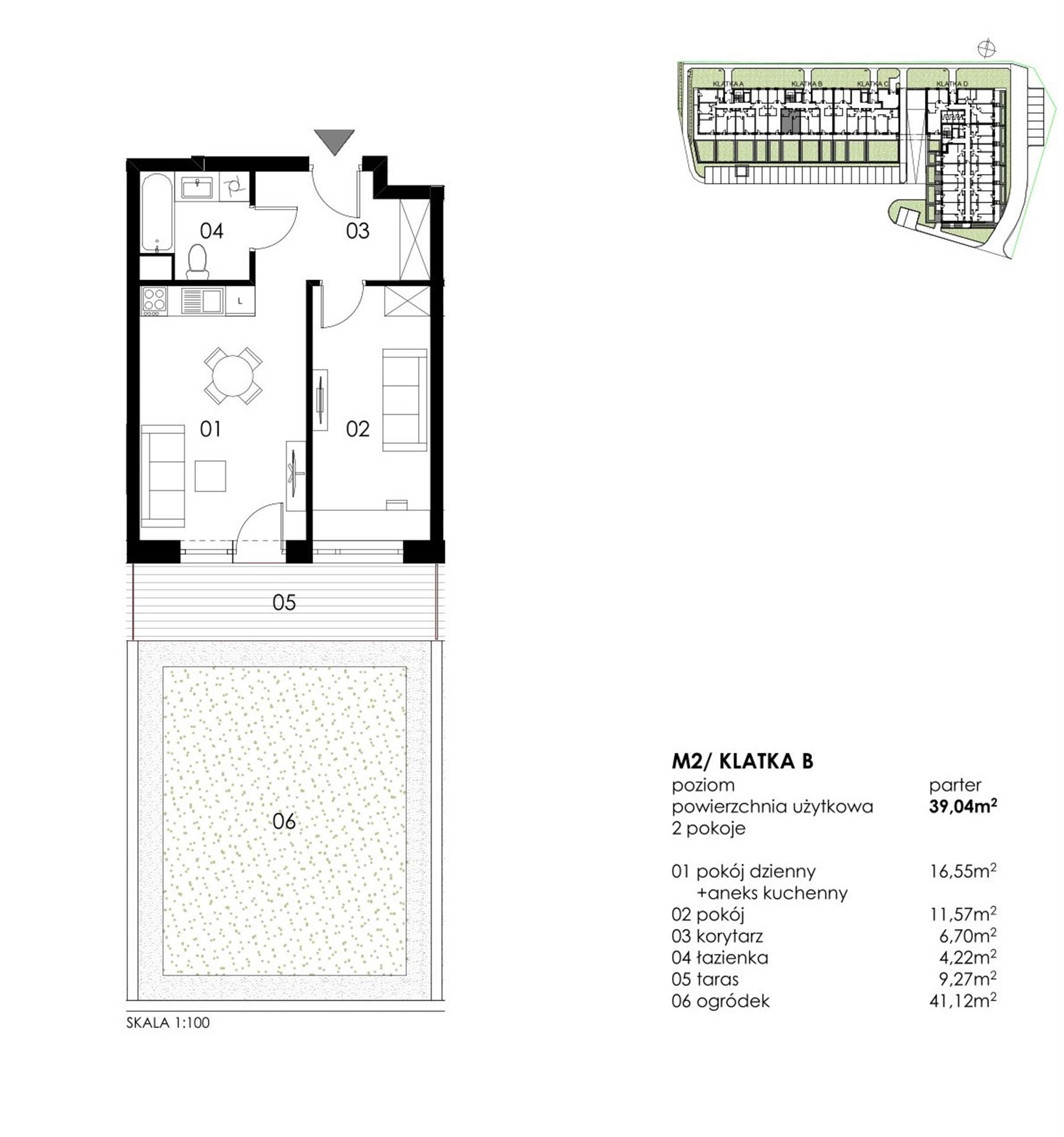 Ta oferta dotyczy mieszkania 2 - pokojowego na parterze o powierzchni 39,04m2 z ogródkiem w cenie 20 500zł, którą należy doliczyć do ceny mieszkania co daje razem: 352 340 zł brutto.