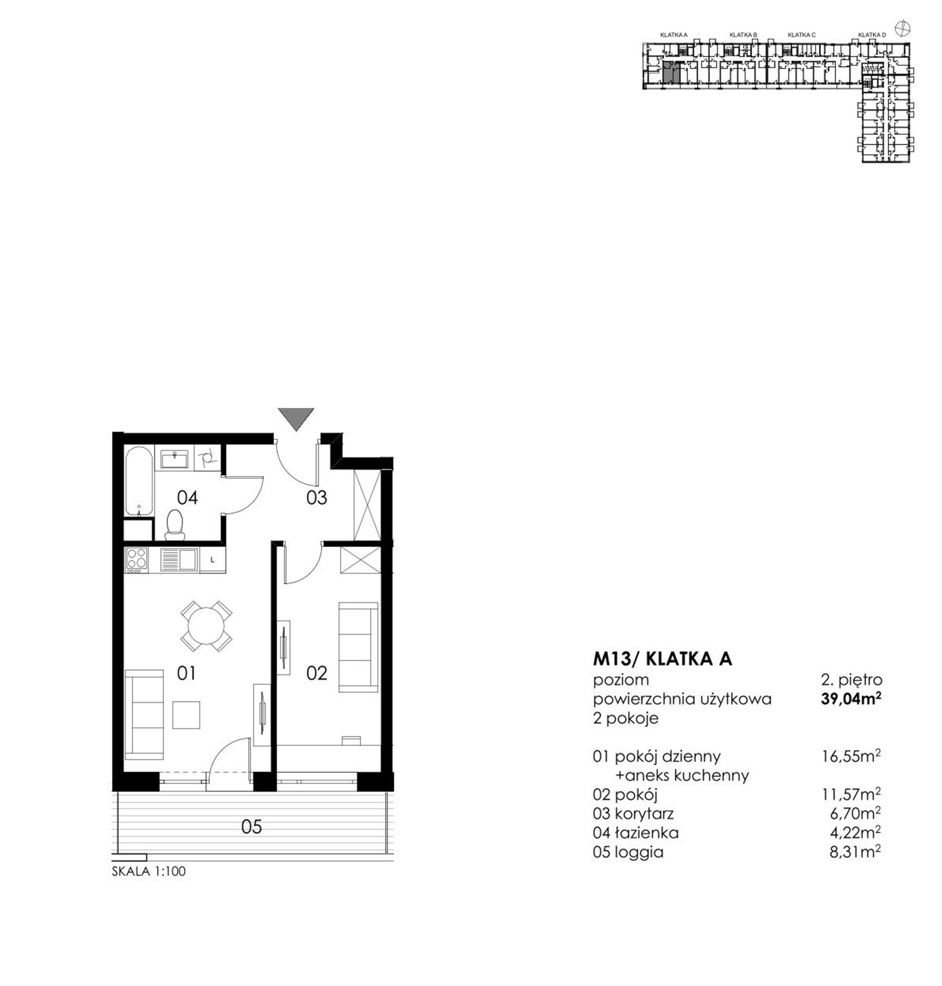 Powierzchnia 39.04 m2