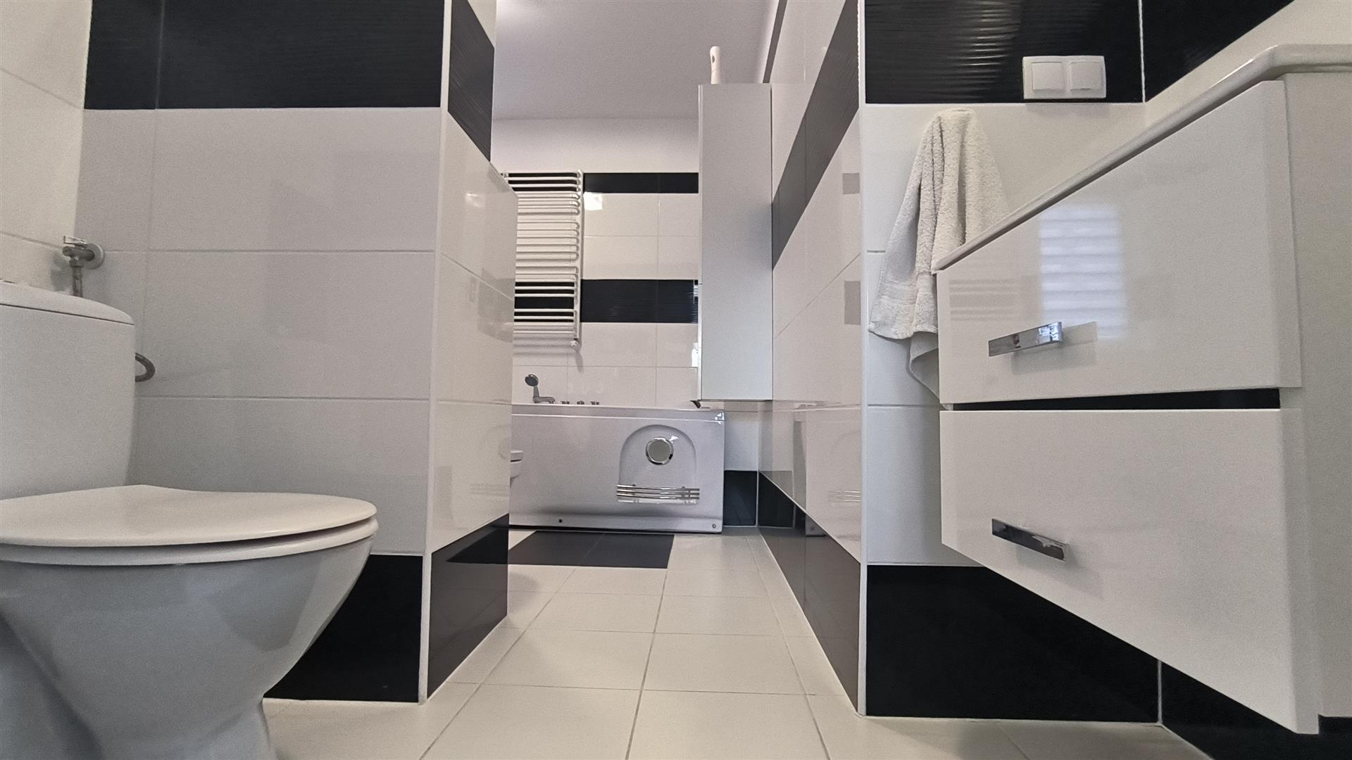 Elegancka łazienka, wyposażona w prysznic, bidet oraz wannę z funkcją masażu i jacuzzi, stworzy idealne warunki do odprężenia.