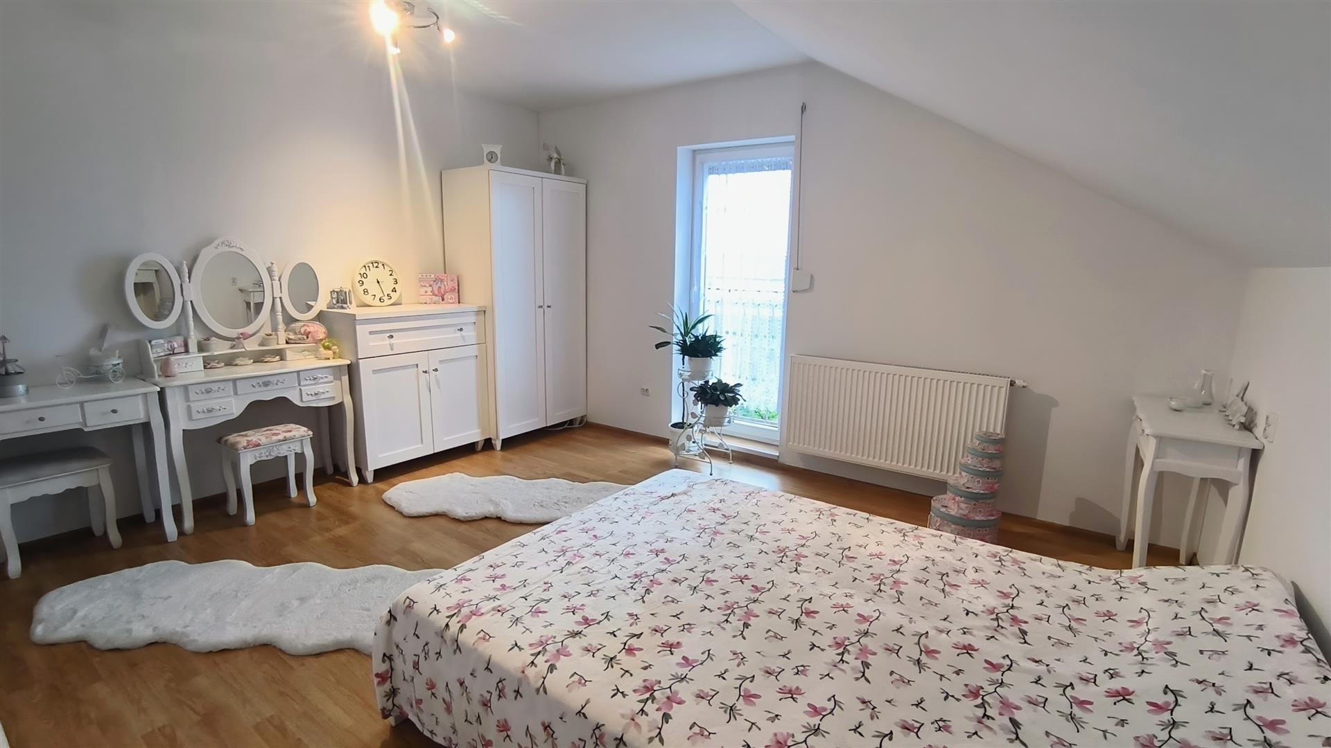 Druga łazienka z wanną, a także duży pawlacz oferujący dodatkową przestrzeń do przechowywania.