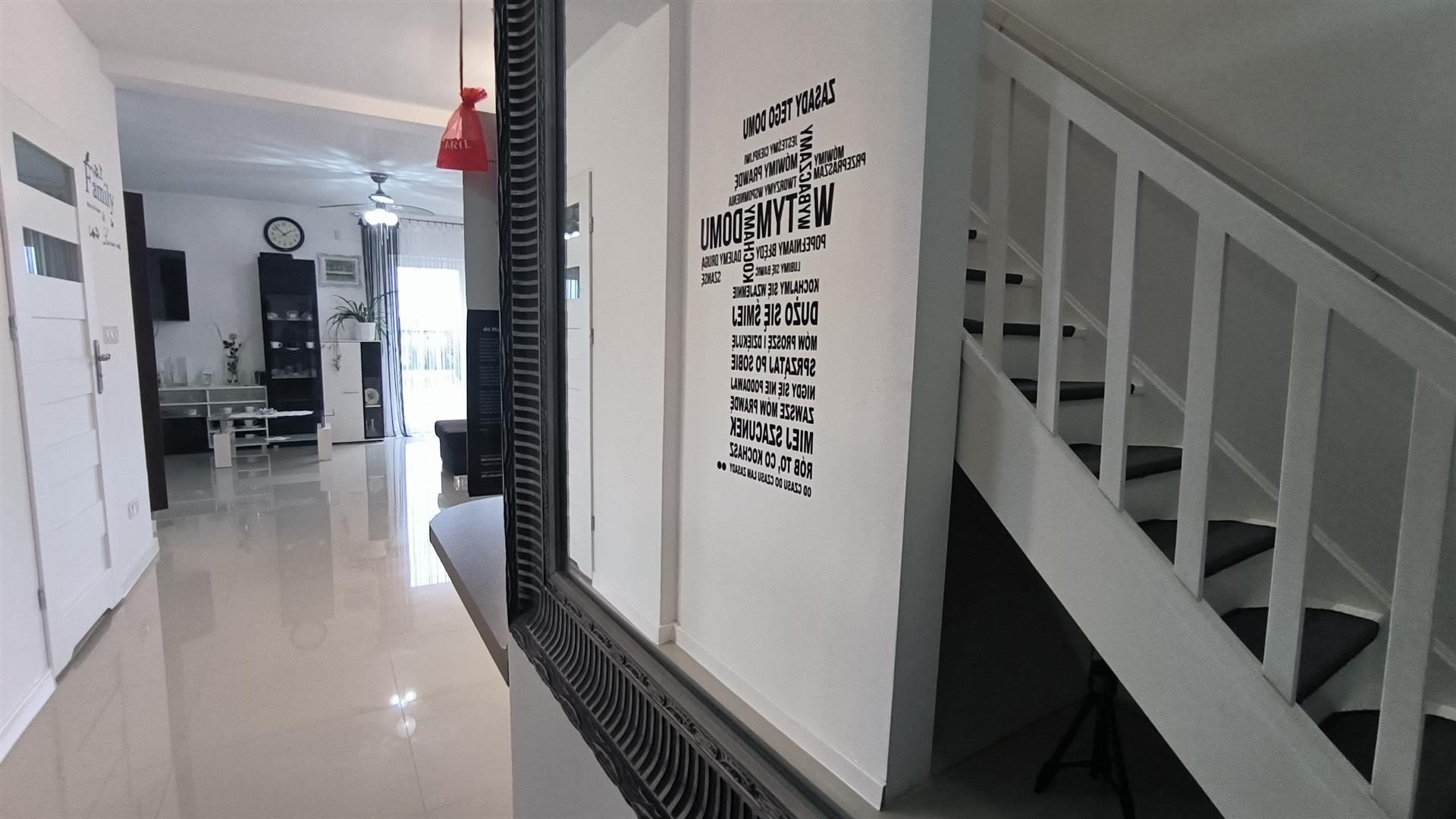 Warto również podkreślić, że w każdym oknie zamontowane są rolety zewnętrzne, a dom jest monitorowany i zabezpieczony alarmem, co zapewnia mieszkańcom poczucie bezpieczeństwa.
