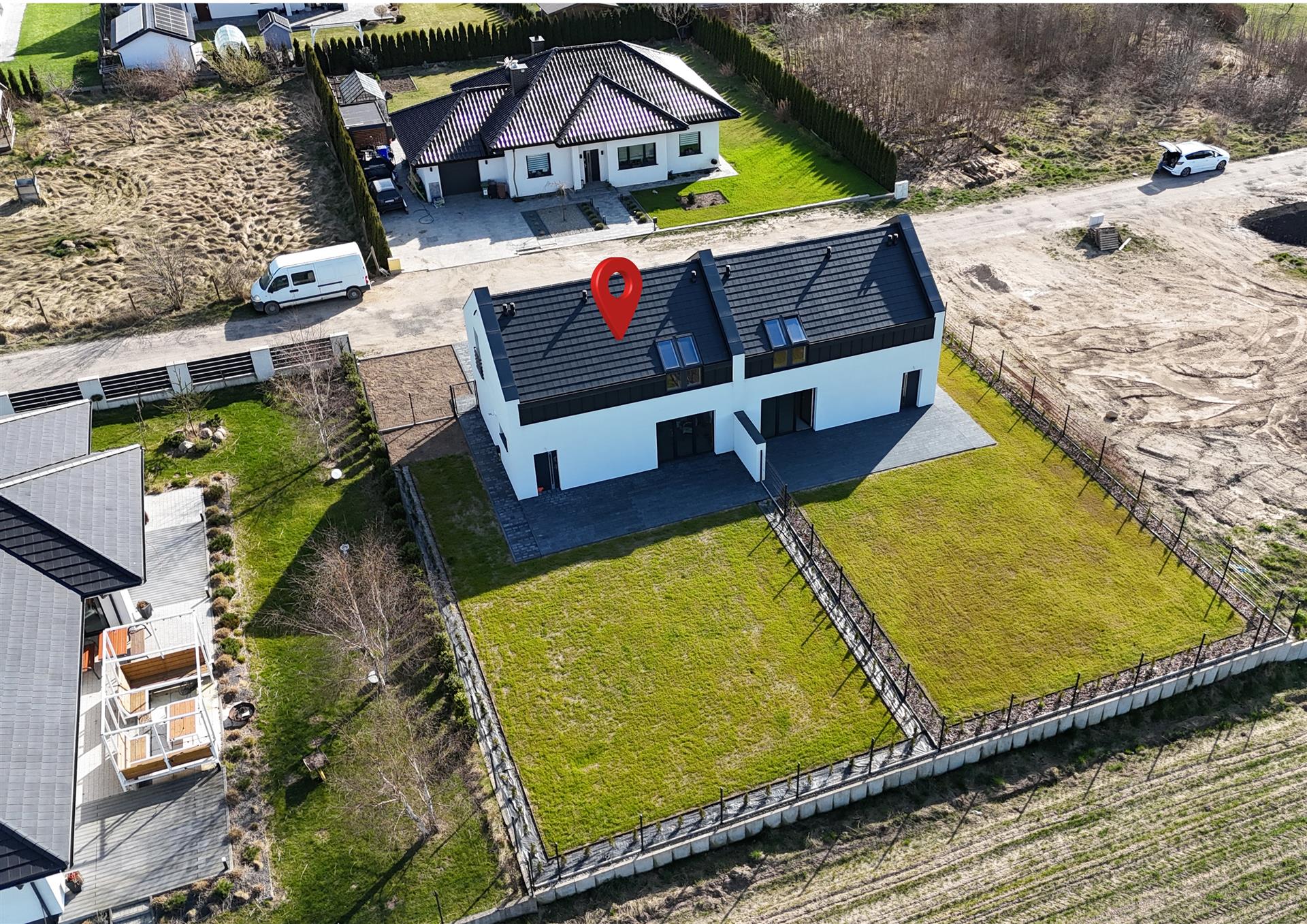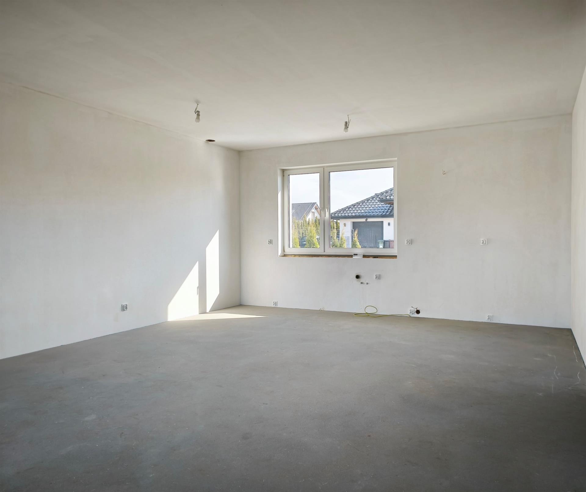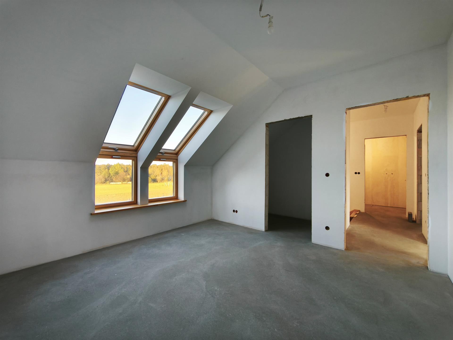 Niepodpiwniczony budynek parterowy z poddaszem użytkowym wykończony w stanie deweloperskim. Usytuowany na działce ewidencyjnej nr 888/24 o całkowitej powierzchni 447 m2. Dojazd do posesji drogą utwardzoną, będąca we współwłasności.