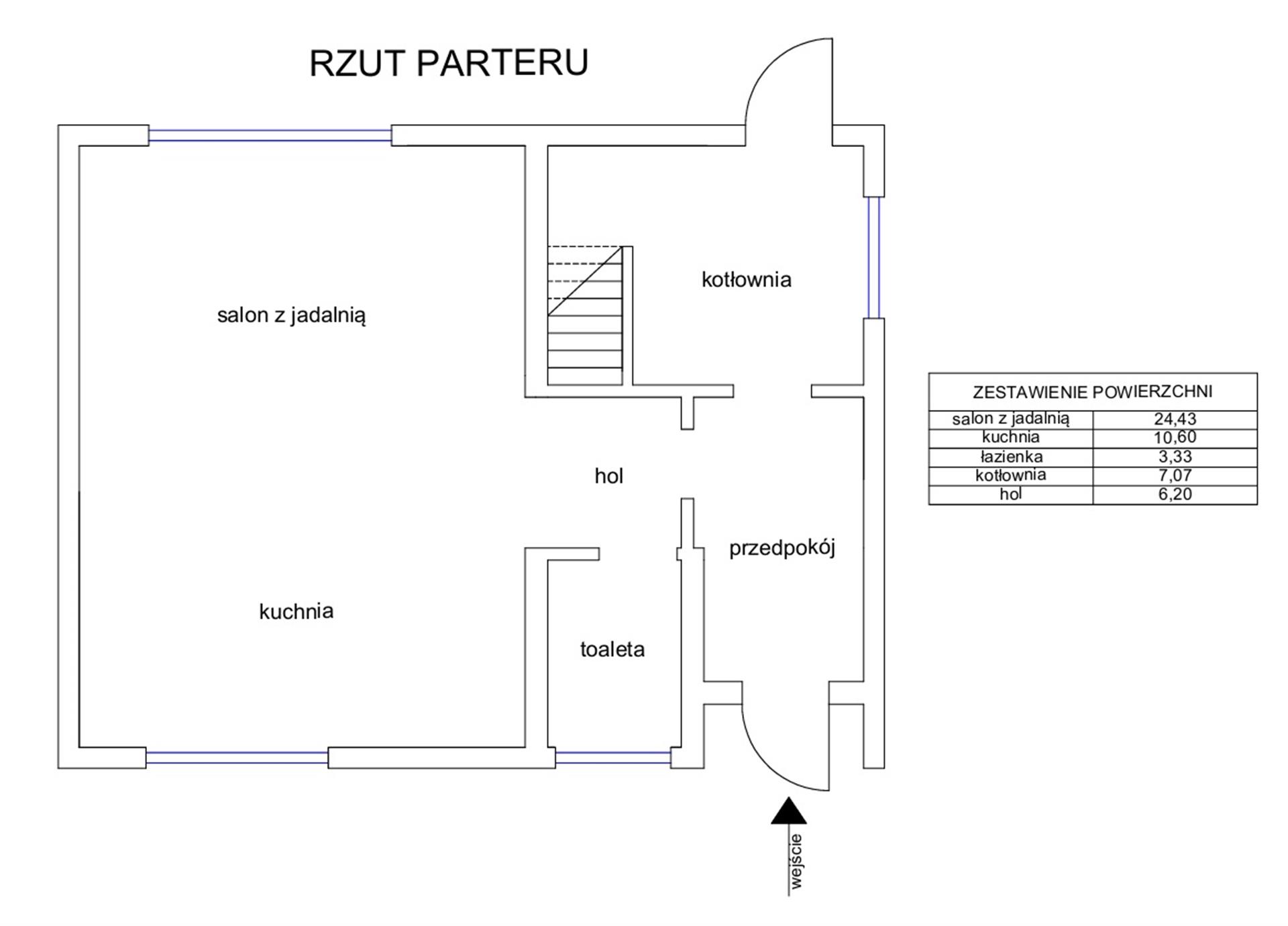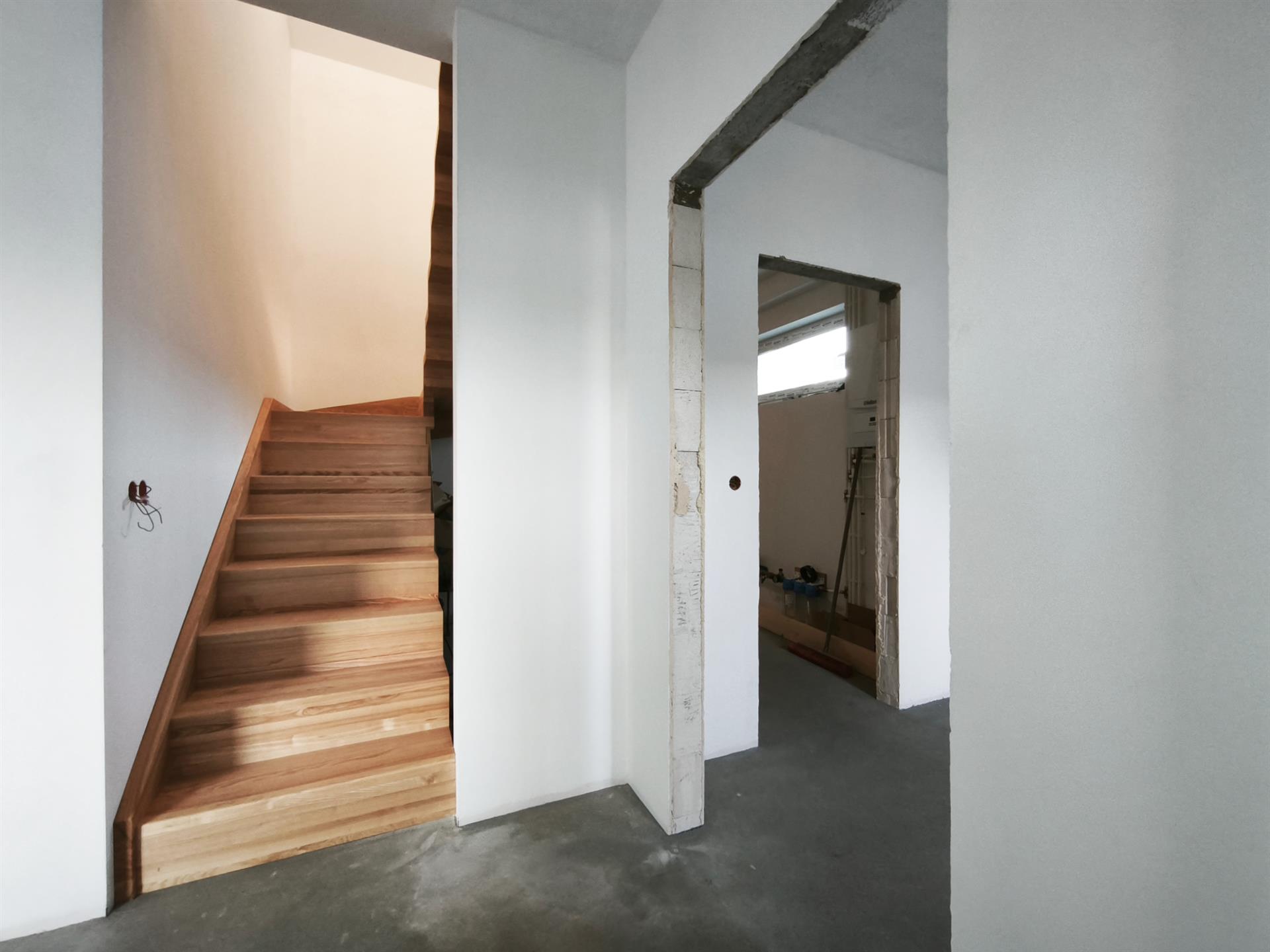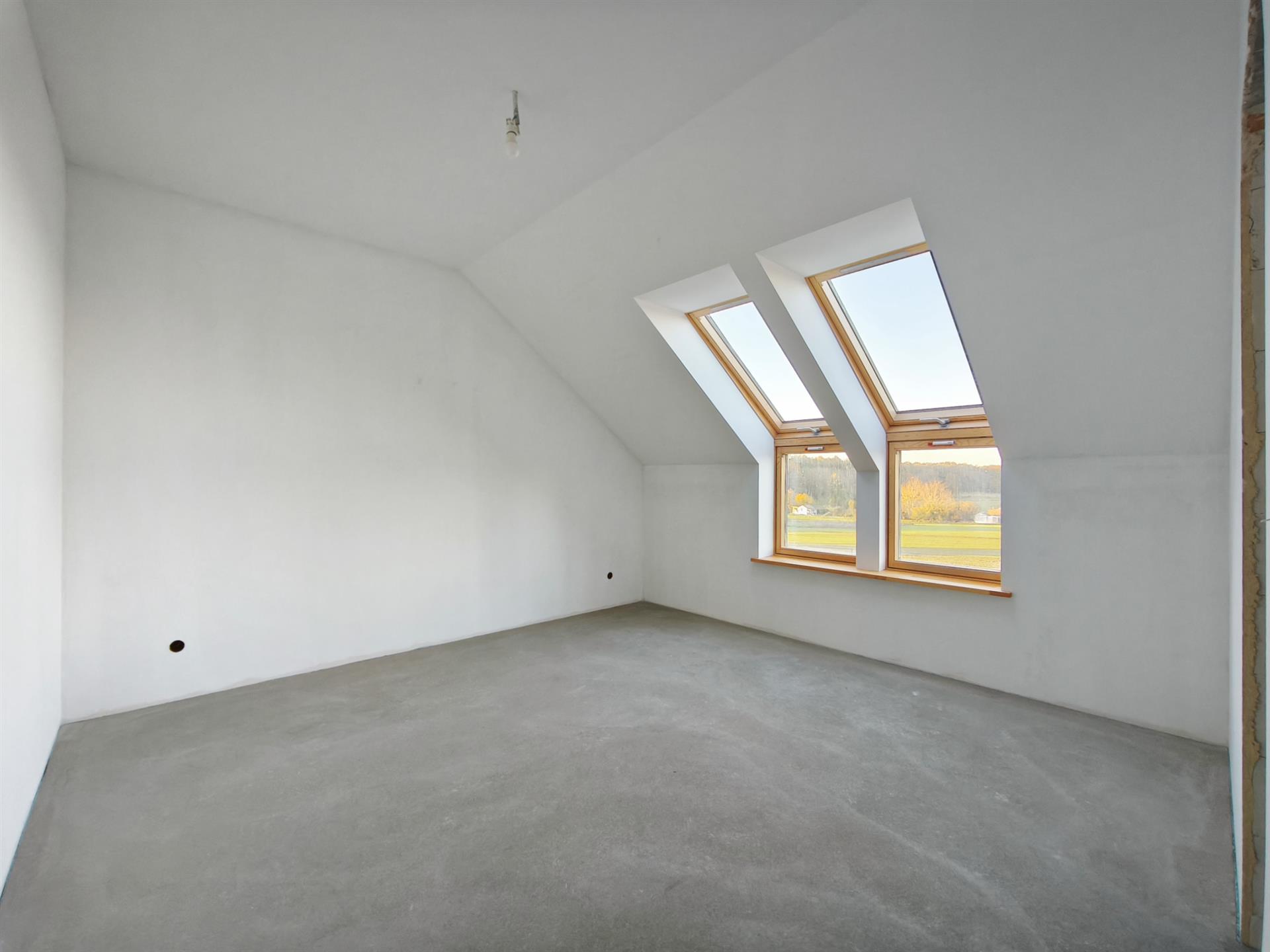 Niepodpiwniczony budynek parterowy z poddaszem użytkowym wykończony w stanie deweloperskim. Usytuowany na działce ewidencyjnej nr 888/24 o całkowitej powierzchni 447 m2. Dojazd do posesji drogą utwardzoną, będąca we współwłasności.