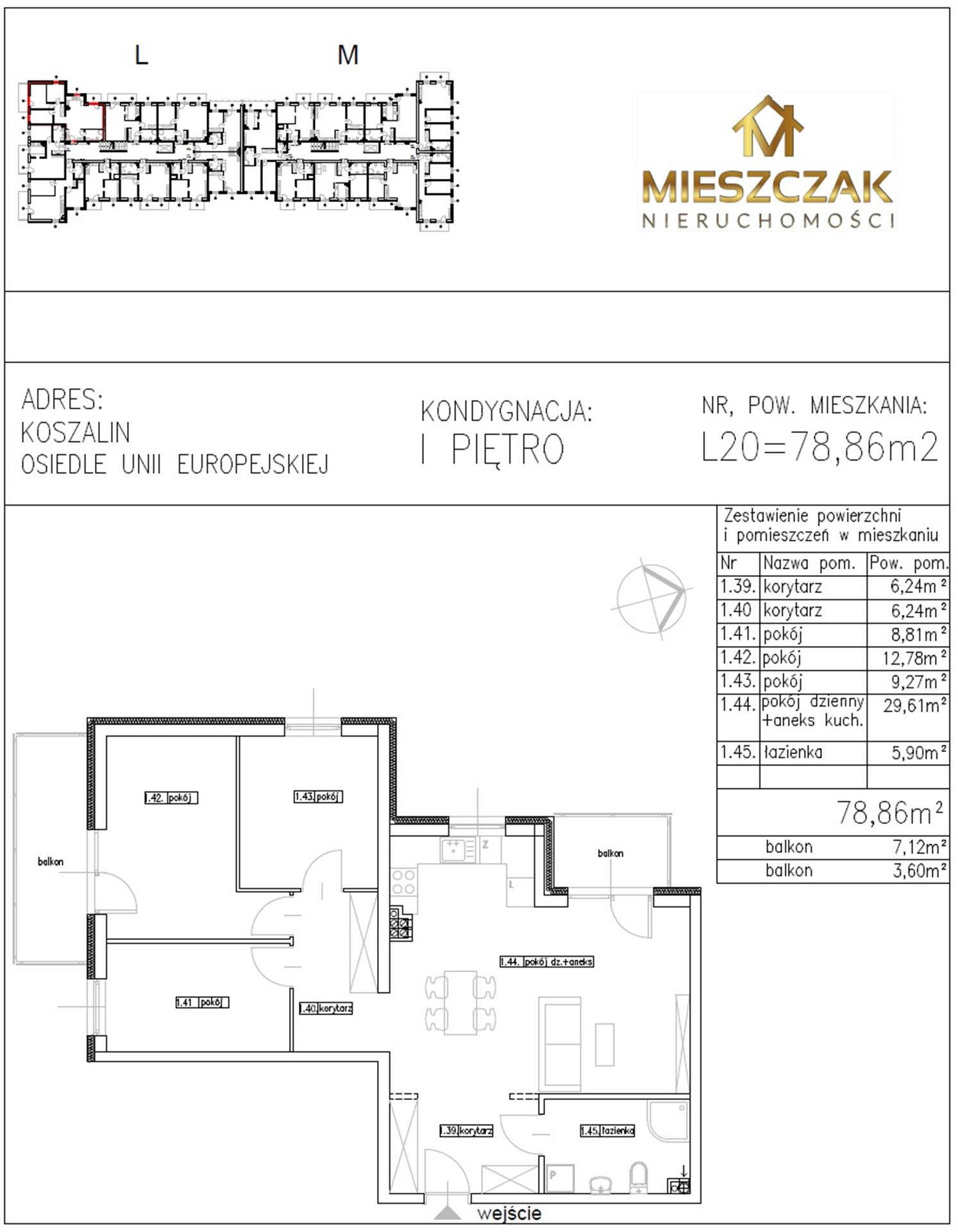 Nowoczesny czteropokojowy apartament (L20) o powierzchni 78,86 m2 położony na pierwszym piętrze w nowoczesnym 3-piętrowym budynku. Składa się z: