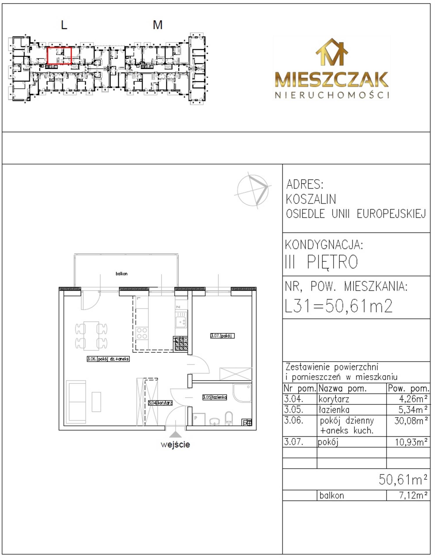 Nowoczesny dwupokojowy apartament (L31) o powierzchni 50,61 m2 położony na trzecim piętrze w nowoczesnym 3-piętrowym budynku. Składa się z: