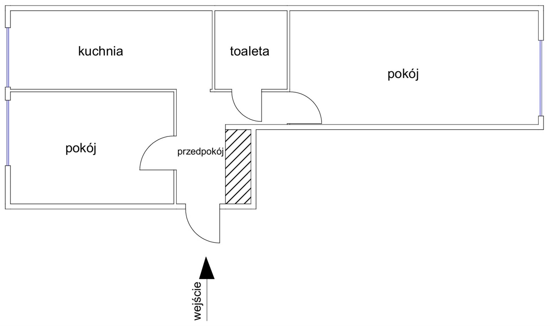 Dwustronne mieszkanie o powierzchni 44,60 m2 położone na czwartym piętrze w czteropiętrowym bloku. Funkcjonalny układ pomieszczeń zapewnia wygodę i praktyczność. Składa się z: