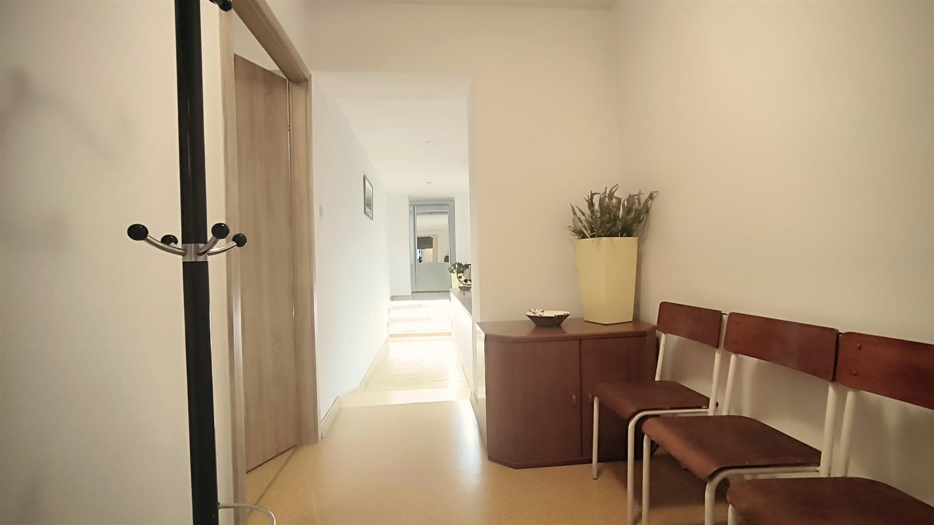 Drugi lokal o powierzchni 37,57 m2 charakteryzuje się przestronnym przedpokojem efektownie podświetlonym LED-ami oraz poczekalnią. W dalszej części znajdują się dwa pomieszczenia z przeznaczeniem pod działalność medyczną: gabinet lekarski oraz gabinet do fizjoterapii. Z obu lokali jest dostęp do wspólnej toalety.