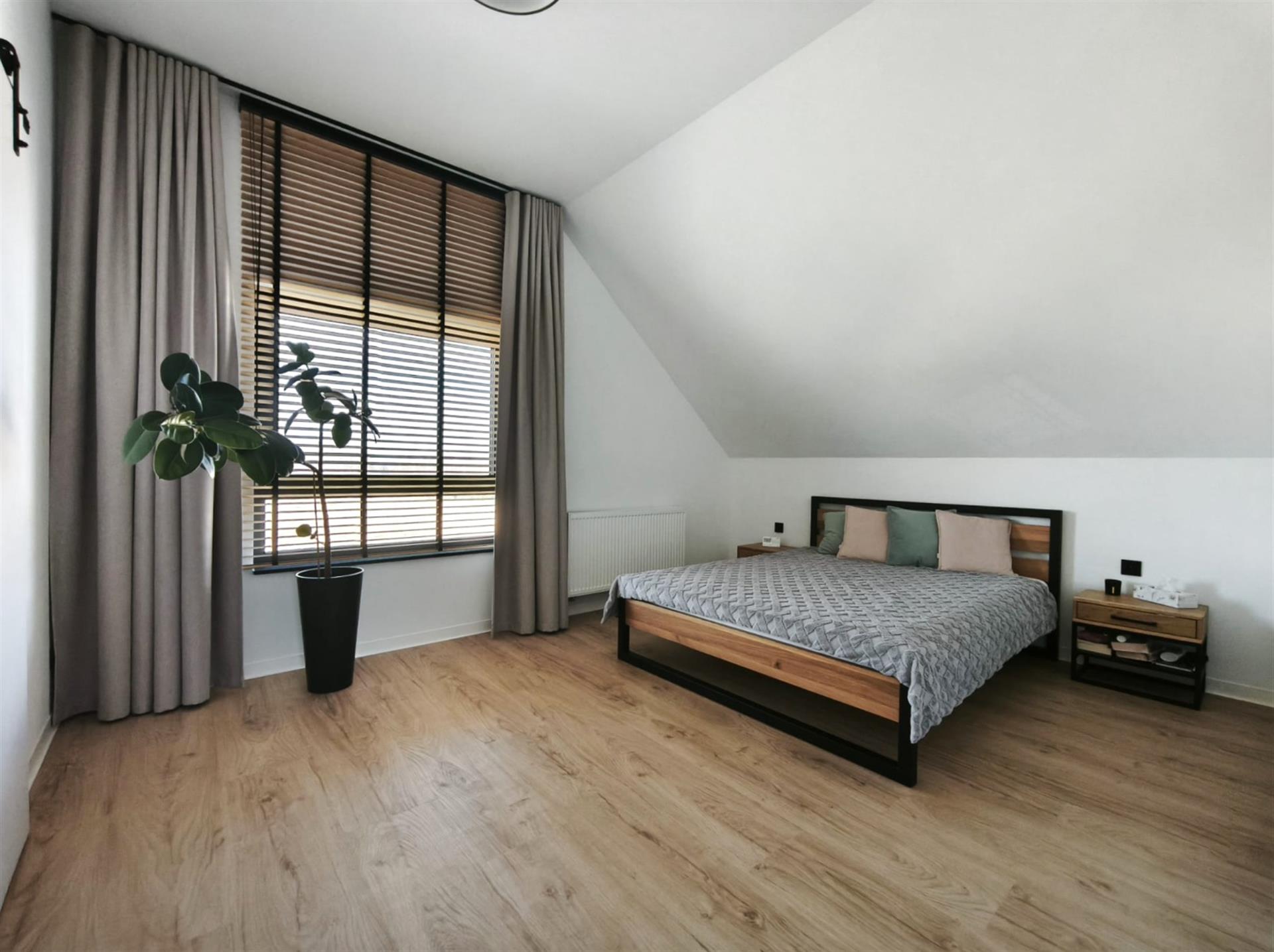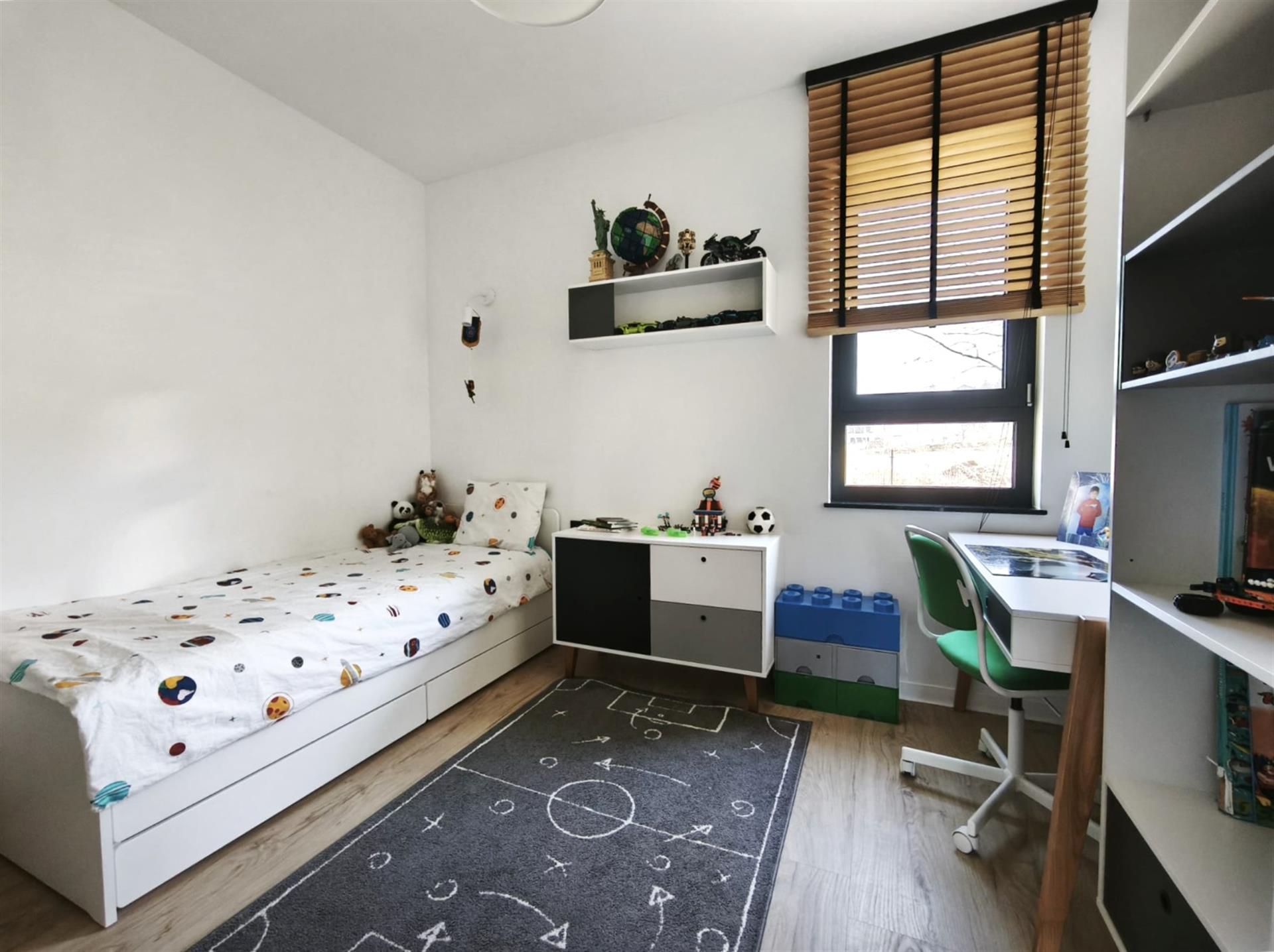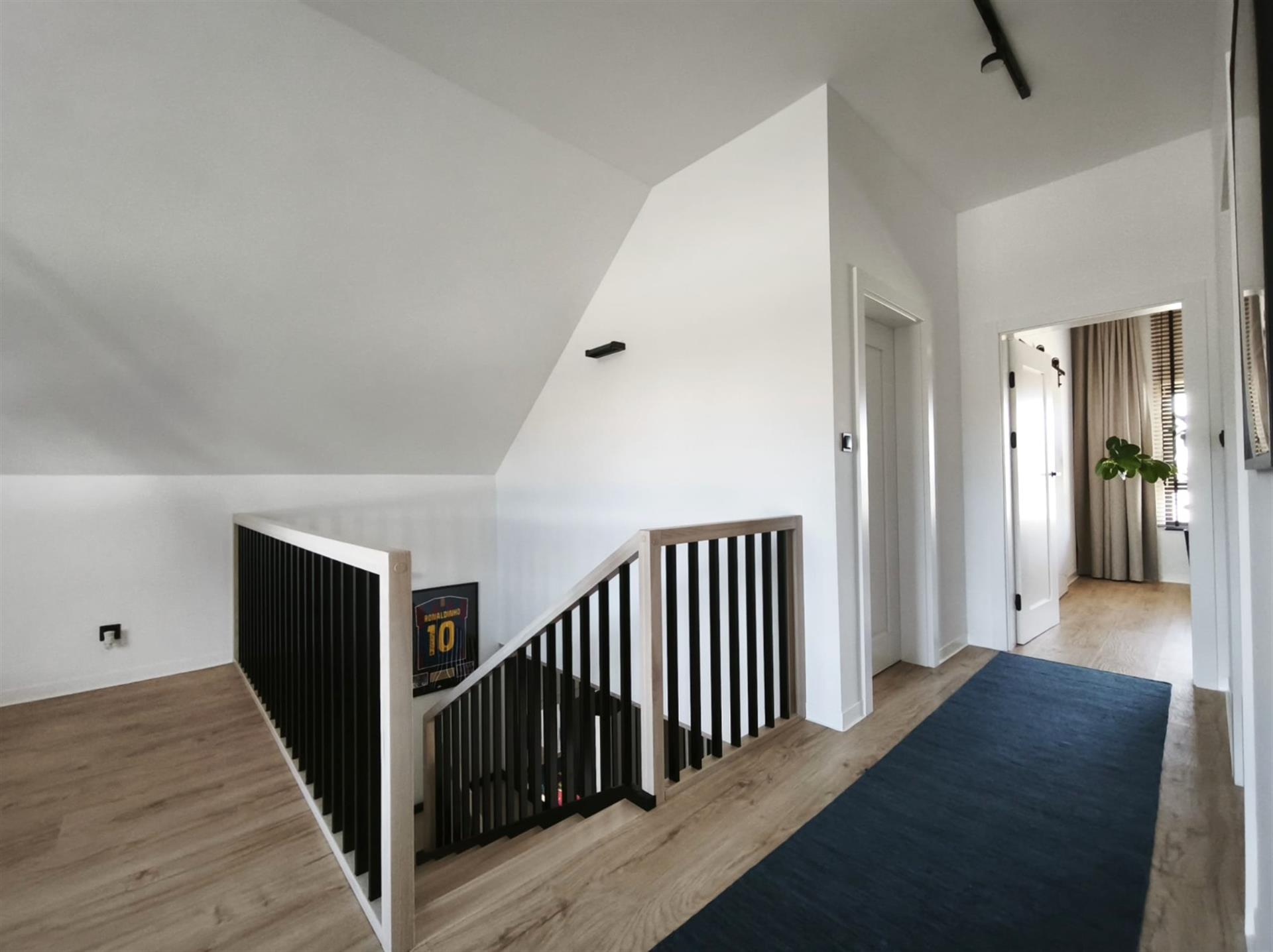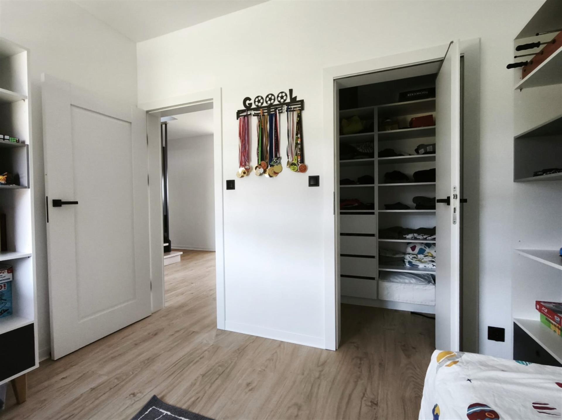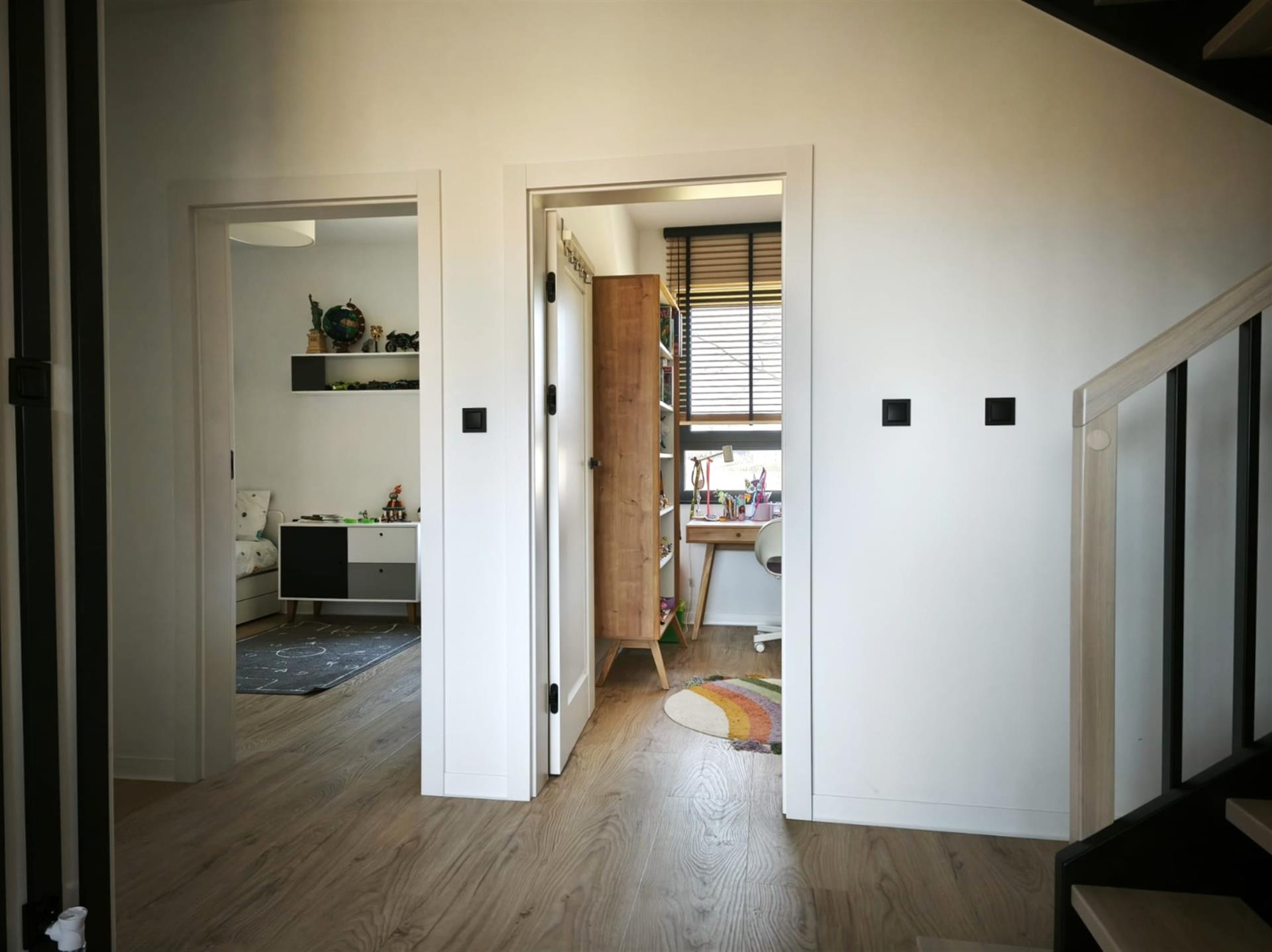 Piętro składa się z komfortowej sypialni z dużą garderobą, pokojem gościnnym, który może również pełnić rolę gabinetu, elegancki pokój kąpielowy z wanną i prysznicem oraz aneks rekreacyjny, obecnie pełniący funkcję siłowni. Dodatkową do wykorzystania powierzchnię stanowi część poddasza, która aktualnie wykorzystywana jest jako bawialnia dla dzieci.