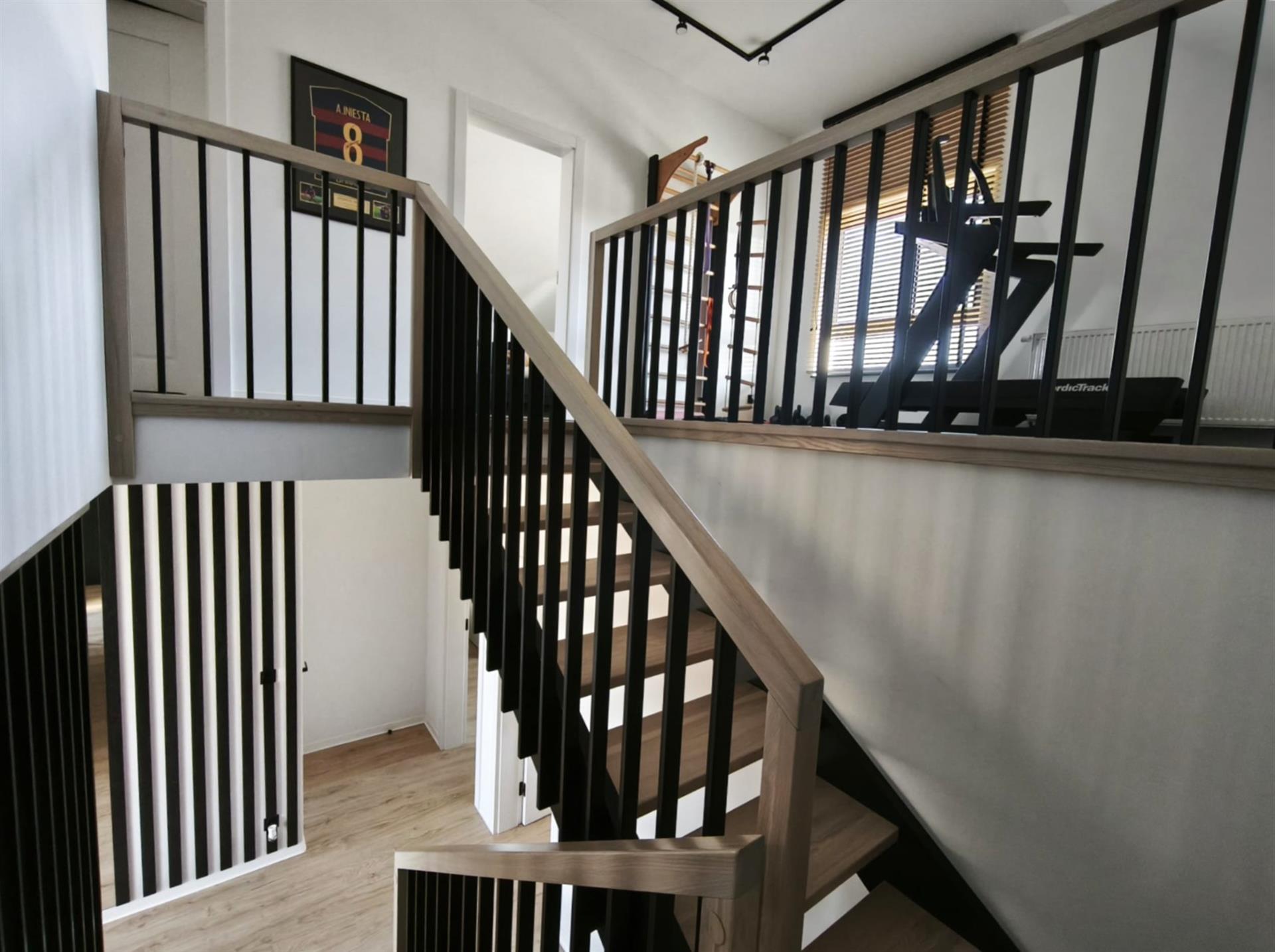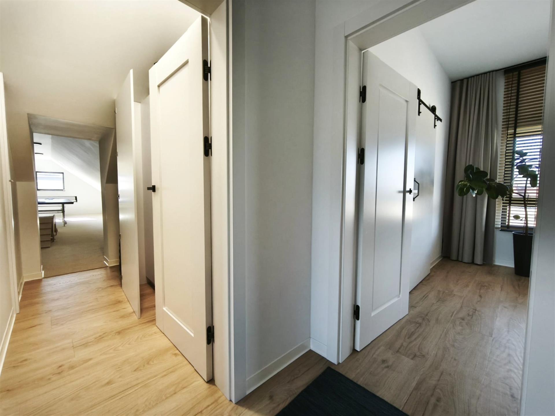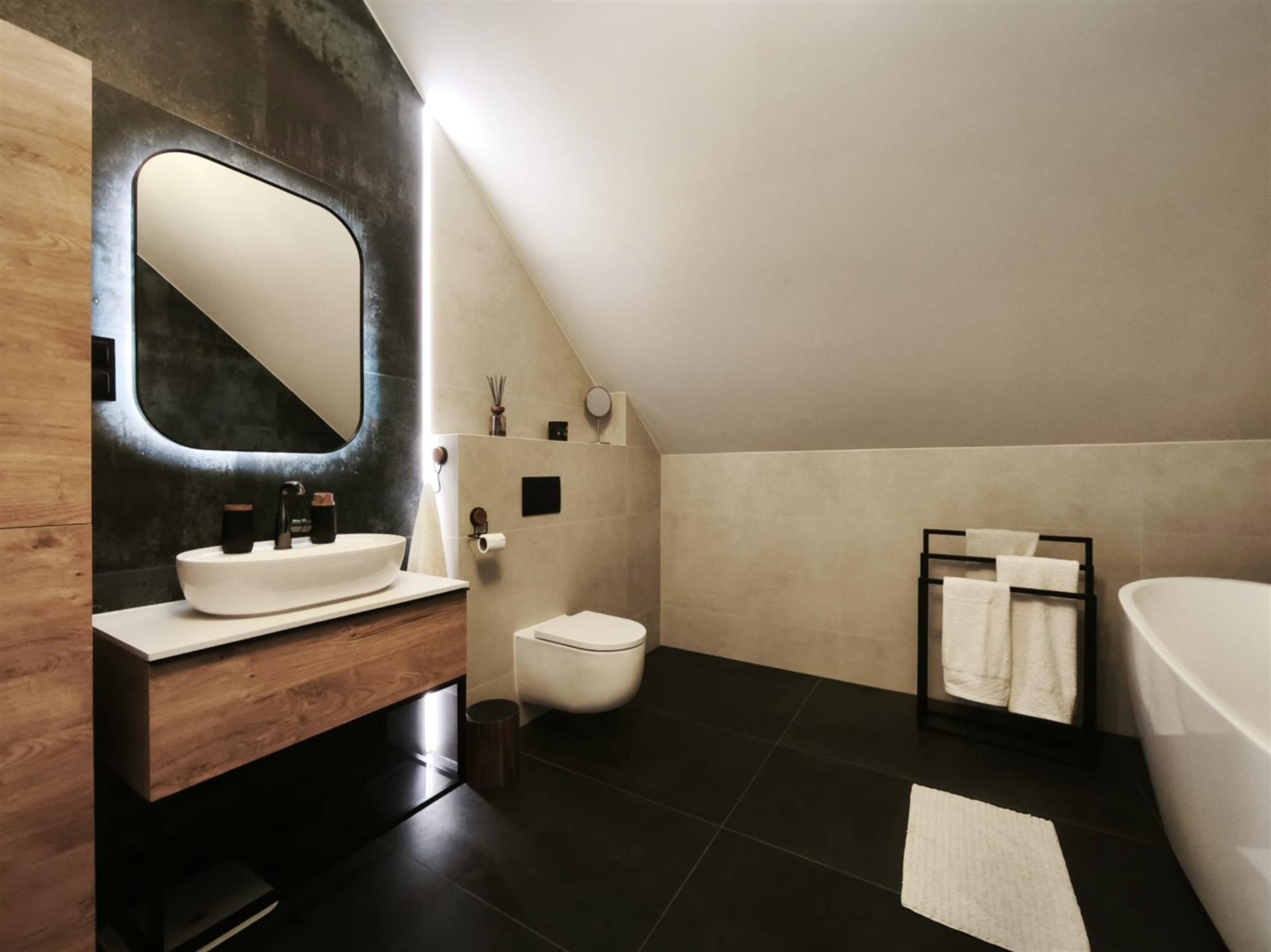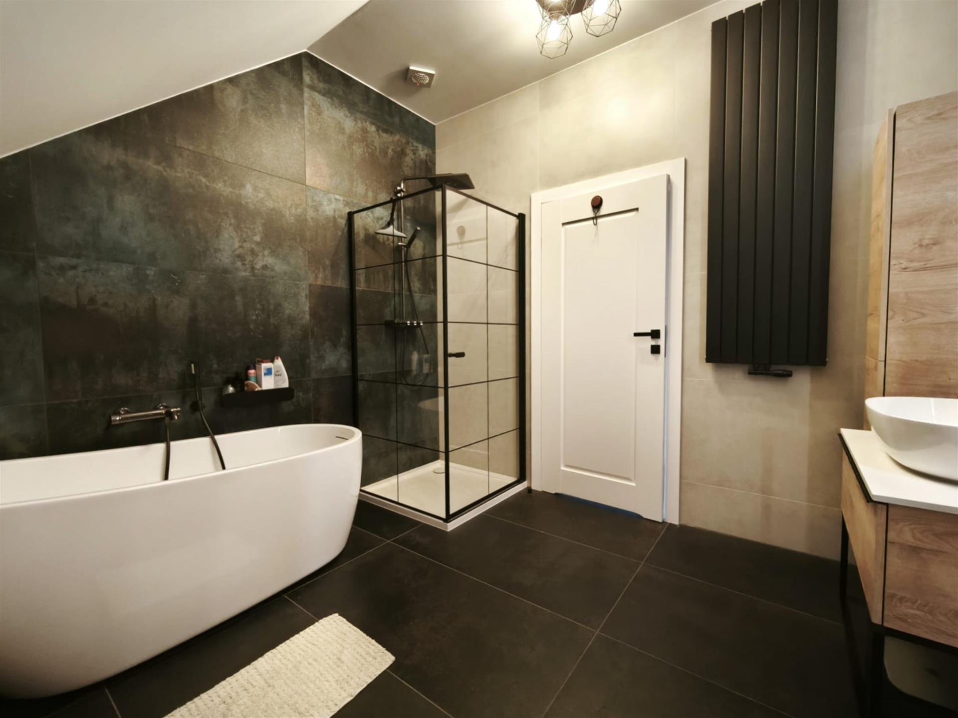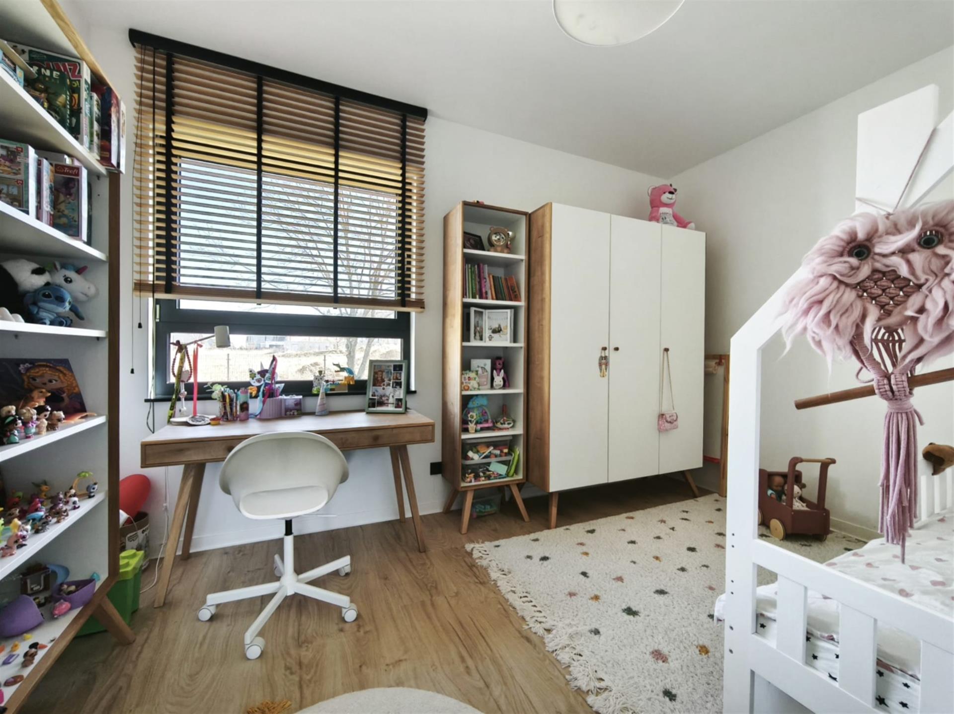 Piętro składa się z komfortowej sypialni z dużą garderobą, pokojem gościnnym, który może również pełnić rolę gabinetu, elegancki pokój kąpielowy z wanną i prysznicem oraz aneks rekreacyjny, obecnie pełniący funkcję siłowni. Dodatkową do wykorzystania powierzchnię stanowi część poddasza, która aktualnie wykorzystywana jest jako bawialnia dla dzieci.