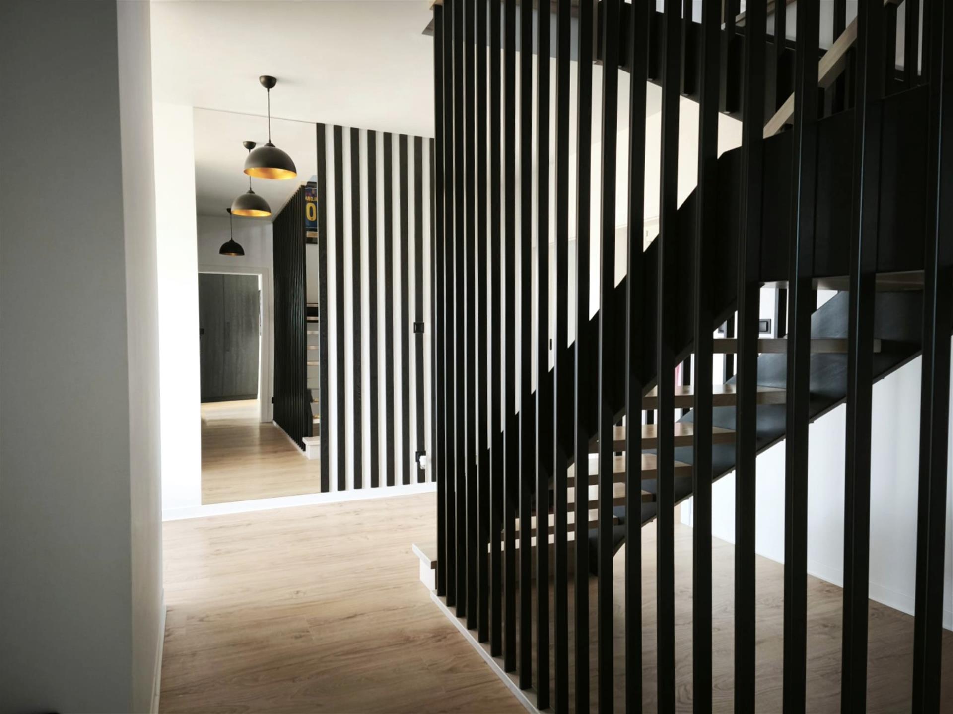 Wnętrze domu wykończono z najwyższej jakości materiałów zapewniając trwałość oraz niepowtarzalny i elegancki charakter. Na parterze zastosowano komfortowe ogrzewanie podłogowe, natomiast na piętrze zamontowano grzejniki. Aluminiowe okna i drzwi ze świetlikiem zapewniają doskonałe doświetlenie przestrzeni, a drewniane schody oraz granitowe parapety wewnętrzne podkreślają ponadczasowy charakter wnętrza.