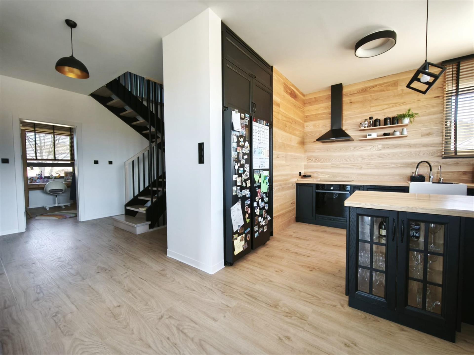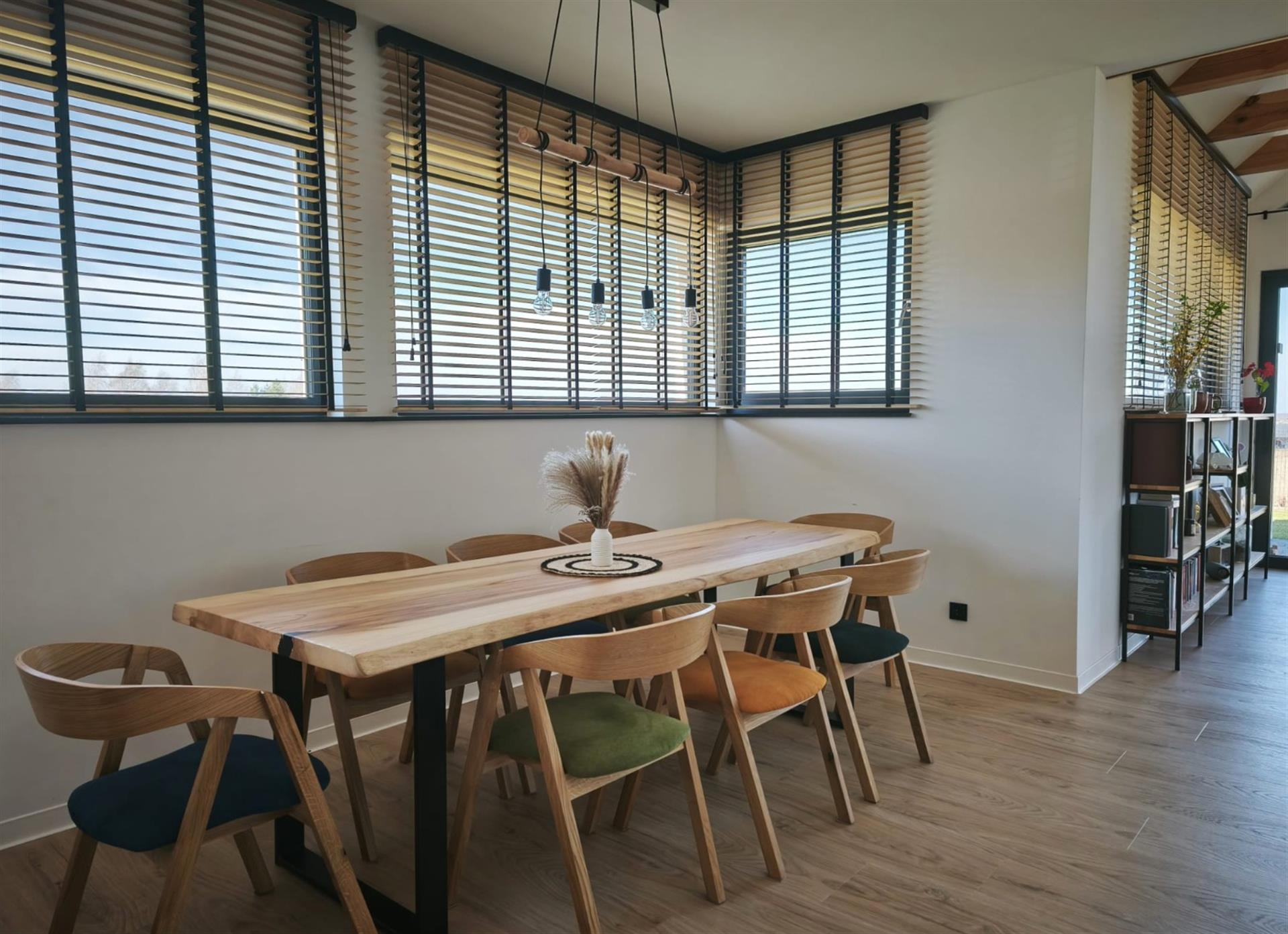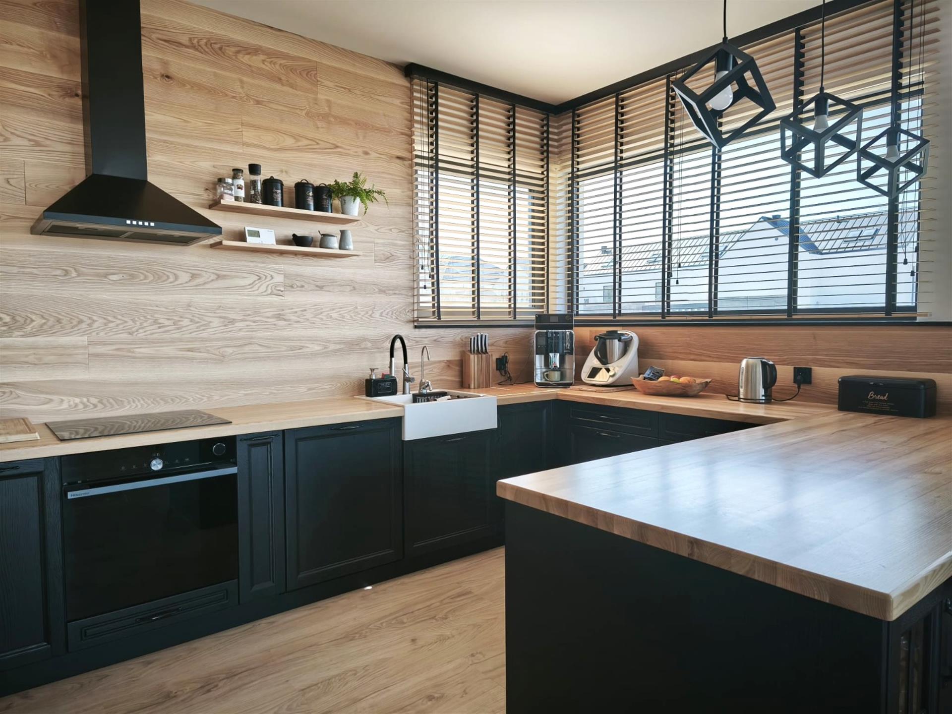 Przemyślany układ pomieszczeń gwarantuje wygodę i funkcjonalność. Na parterze znajduje się reprezentacyjny, przestronny salon, który stanowi serce całego domu. To idealne miejsce na rodzinne chwile, relaks przy kominku czy spotkania z gośćmi w wyjątkowej atmosferze. Duże przeszklenia nadają wnętrzu prestiżowego charakteru, wpuszczając mnóstwo naturalnego światła i podkreślając piękno drewnianego wykończenia. Kolejnym pomieszczeniem jest jadalnia oraz kuchnia wykonana na zamówienie z naturalnego drewna, uzupełniona praktyczną spiżarnią. Kolejną przestrzeń parteru zajmują dwa pokoje (w tym jeden z garderobą), łazienka z prysznicem oraz kotłownia z pralnią i pomieszczenie gospodarcze z wyjściem na ogród. Na uwagę zasługuje również duży hall z pojemnymi szafami w zabudowie.