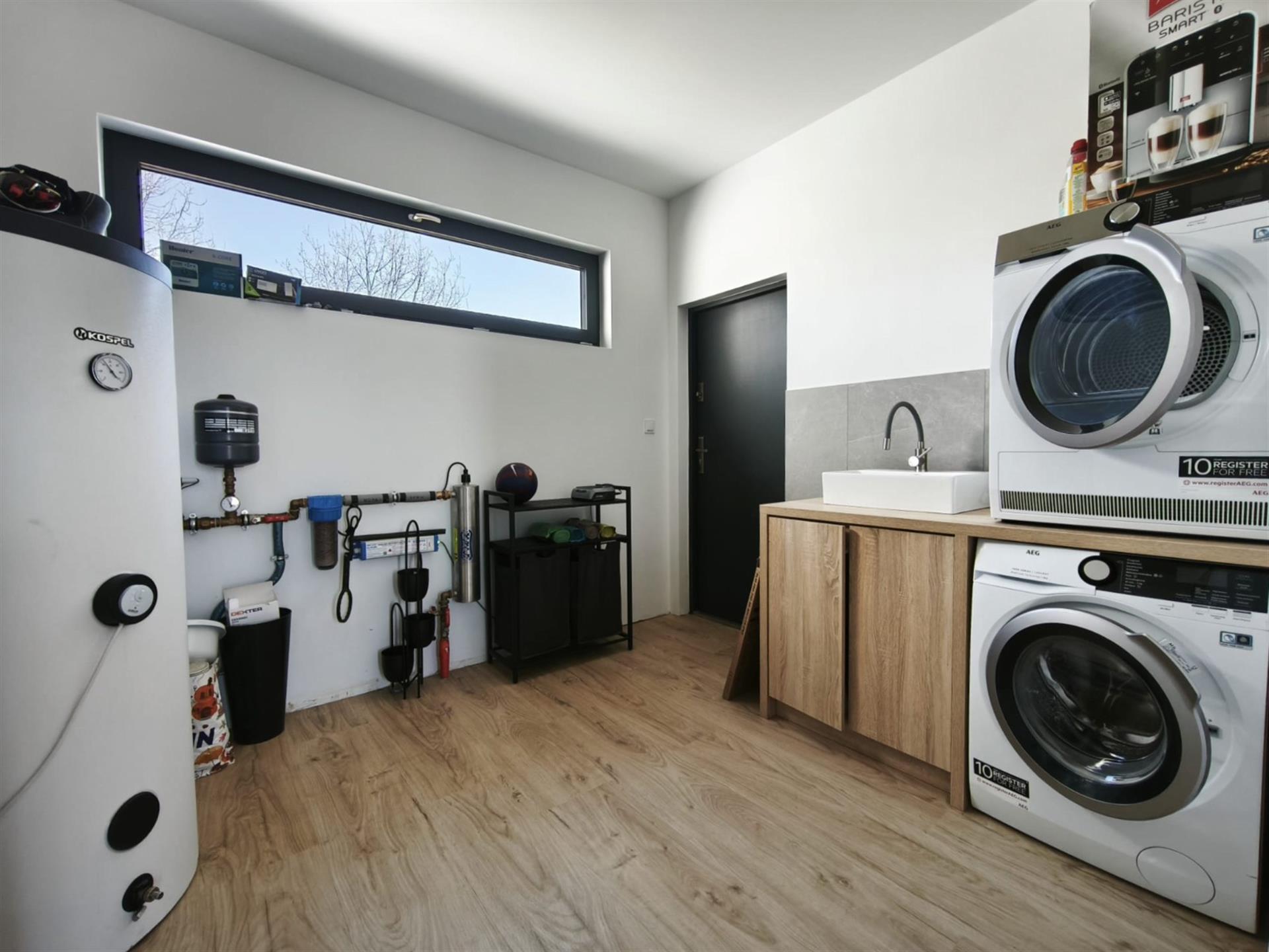Nieruchomość została zaprojektowana z myślą o zdrowym i energooszczędnym stylu życia. Wyposażona w instalację fotowoltaiczną wraz z magazynem energii SOFAR, nowoczesną pompą ciepła DAIKIN z zasobnikiem ciepłej wody KOSPEL oraz własnym ujęciem wody. Wszystko to zapewnia niezależność i niskie koszty eksploatacji. Dodatkowym atutem jest system automatycznego nawadniania ogrodu sterowany zdalnie, monitoring oraz brama wjazdowa na pilota, co podnosi poziom bezpieczeństwa i wygody. Na posesji znajduje się także funkcjonalna, dwustanowiskowa wiata samochodowa.