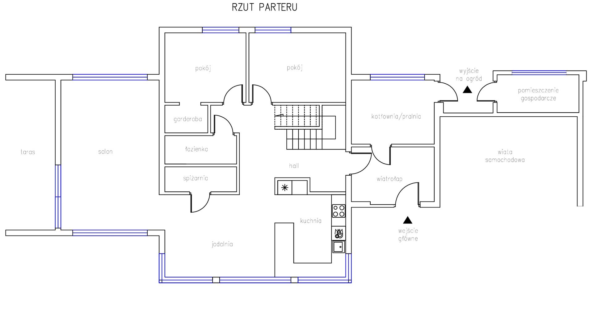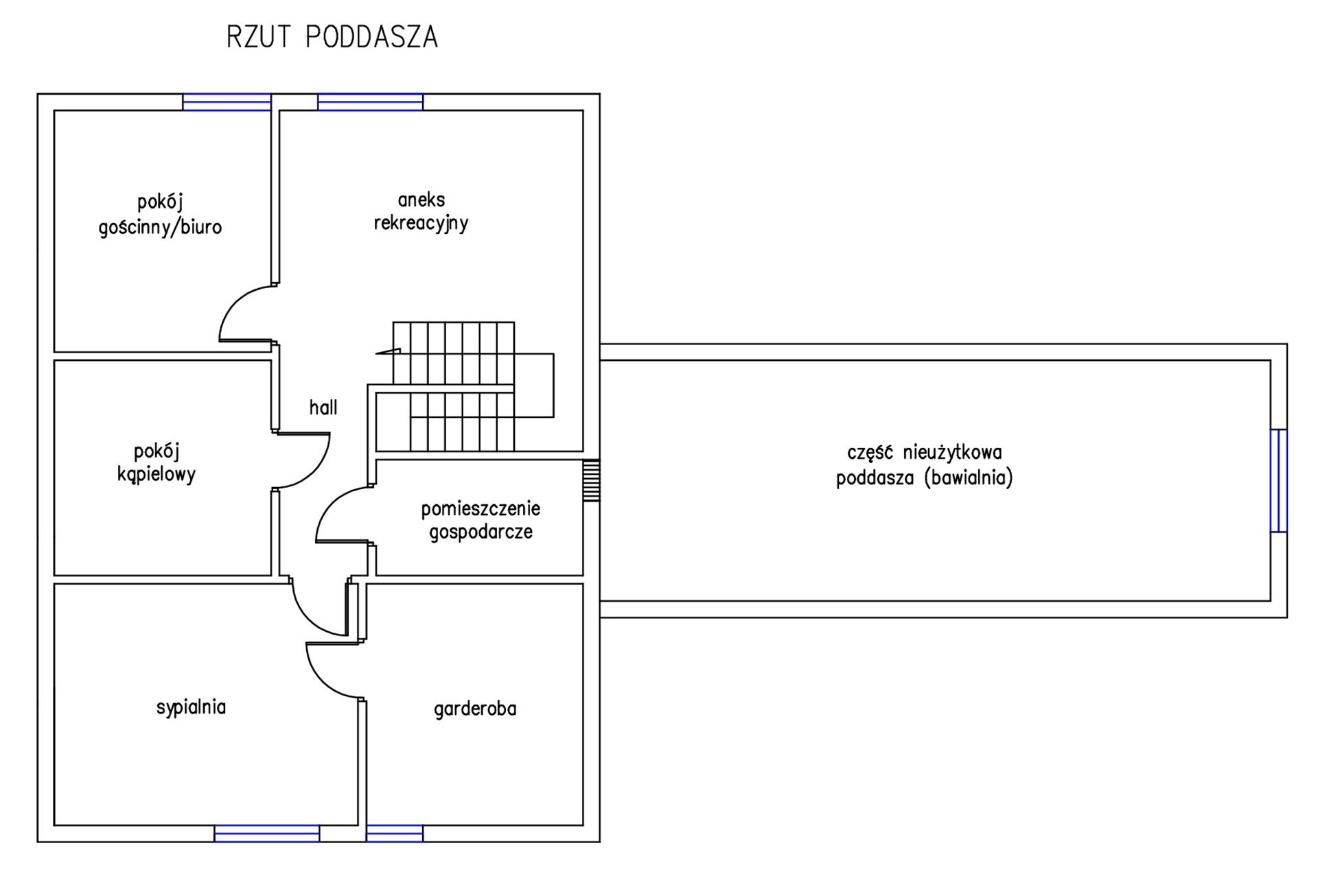 - dach: wielospadowy, pokryty blachą na rąbek, ocieplony wełną